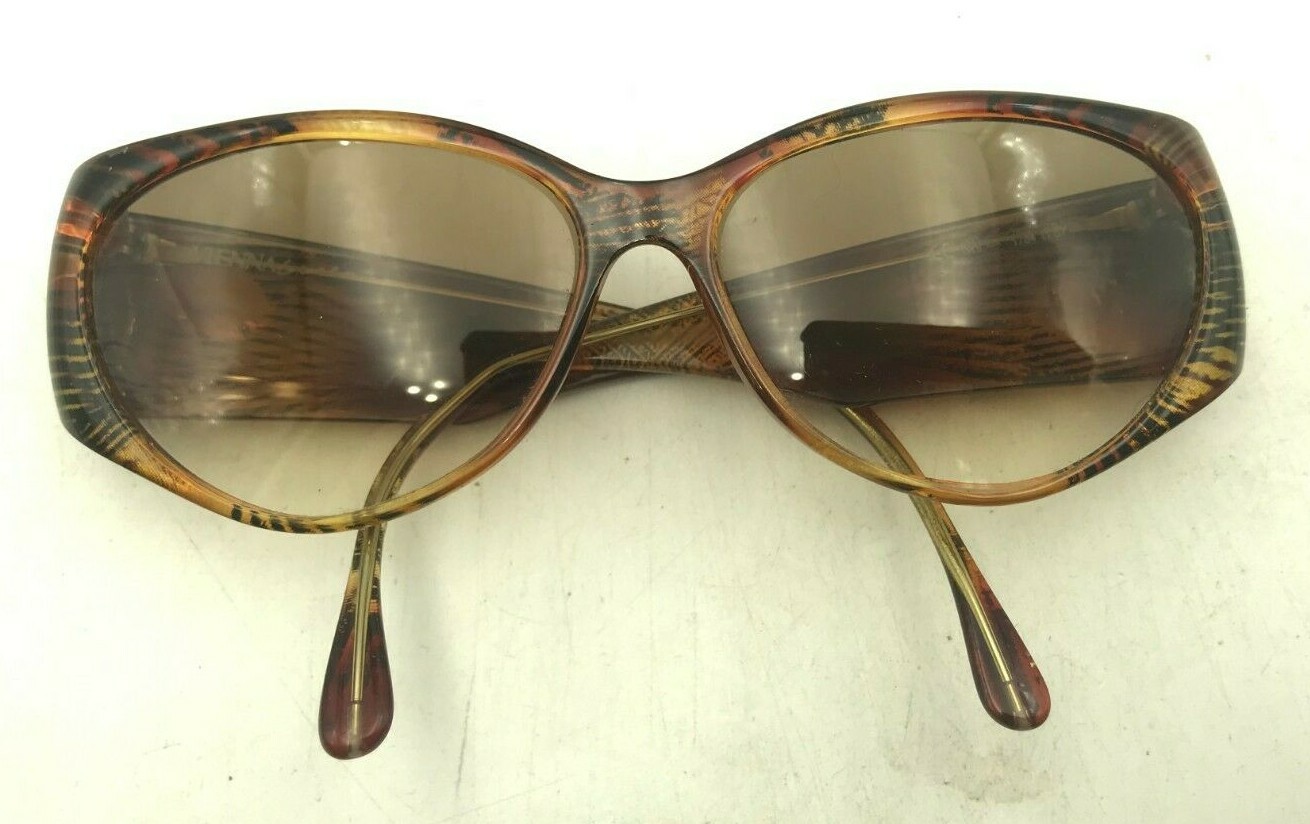 Vintage Vienna Line 1784 11 Brown Amber Oval Cat Eye Sunglasses Frames Austria
