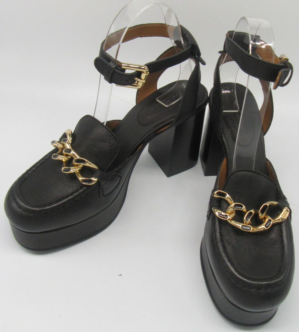 See By Chloe Chunky Heel Chain-Detail Loafers in 999 Black sz 37