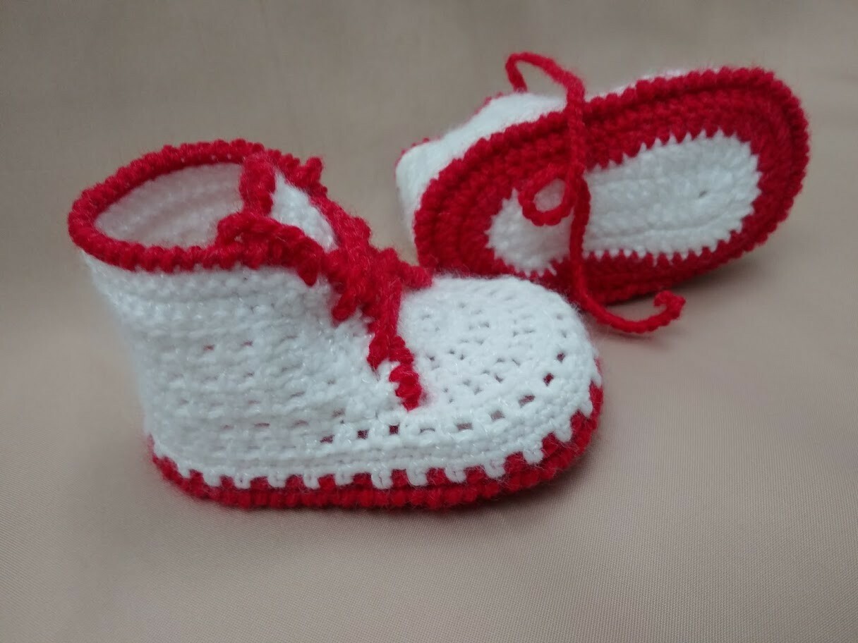 Crochet Baby Shoes White Red