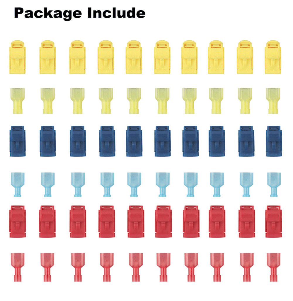 как выглядит 60pcs T-Taps Wire Terminal Connectors Insulated 22-10 AWG Quick Splice Combo Kit фото