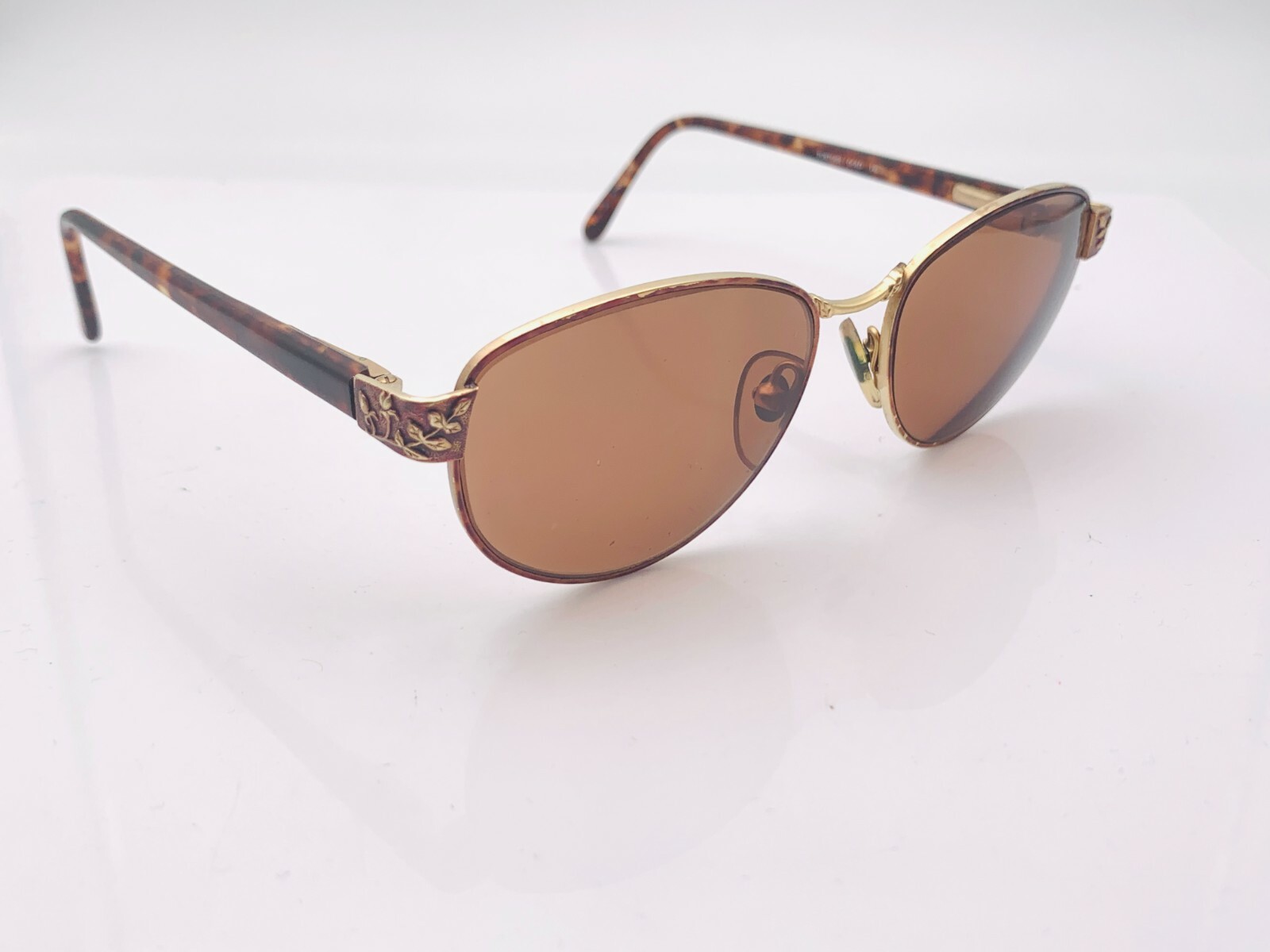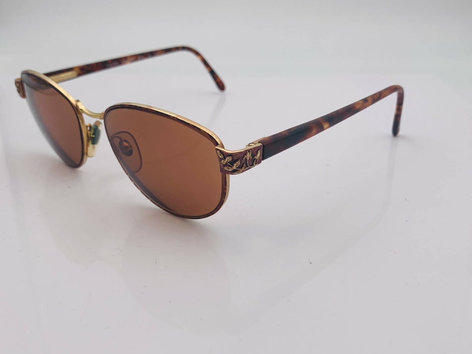 как выглядит Vintage Laura Ashley Sun24 Brown Gold Metal Oval Sunglasses FRAMES ONLY фото