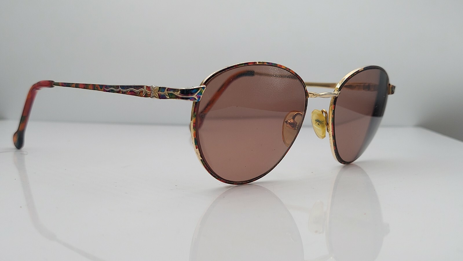 как выглядит Vintage ESQ Gold Multi-Color Metal Oval Sunglasses FRAMES ONLY фото
