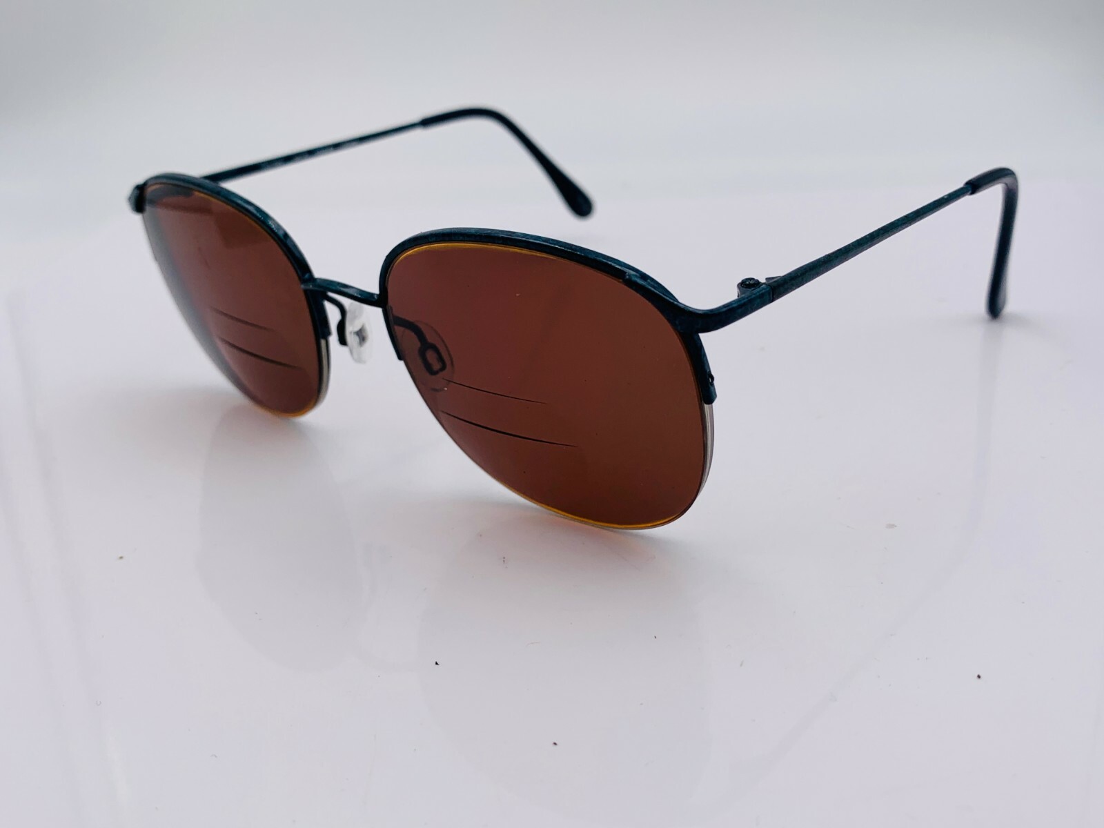 как выглядит Vintage Charmant 4419 Blue Metal Oval Half-Rimmed Sunglasses Japan FRAMES ONLY фото