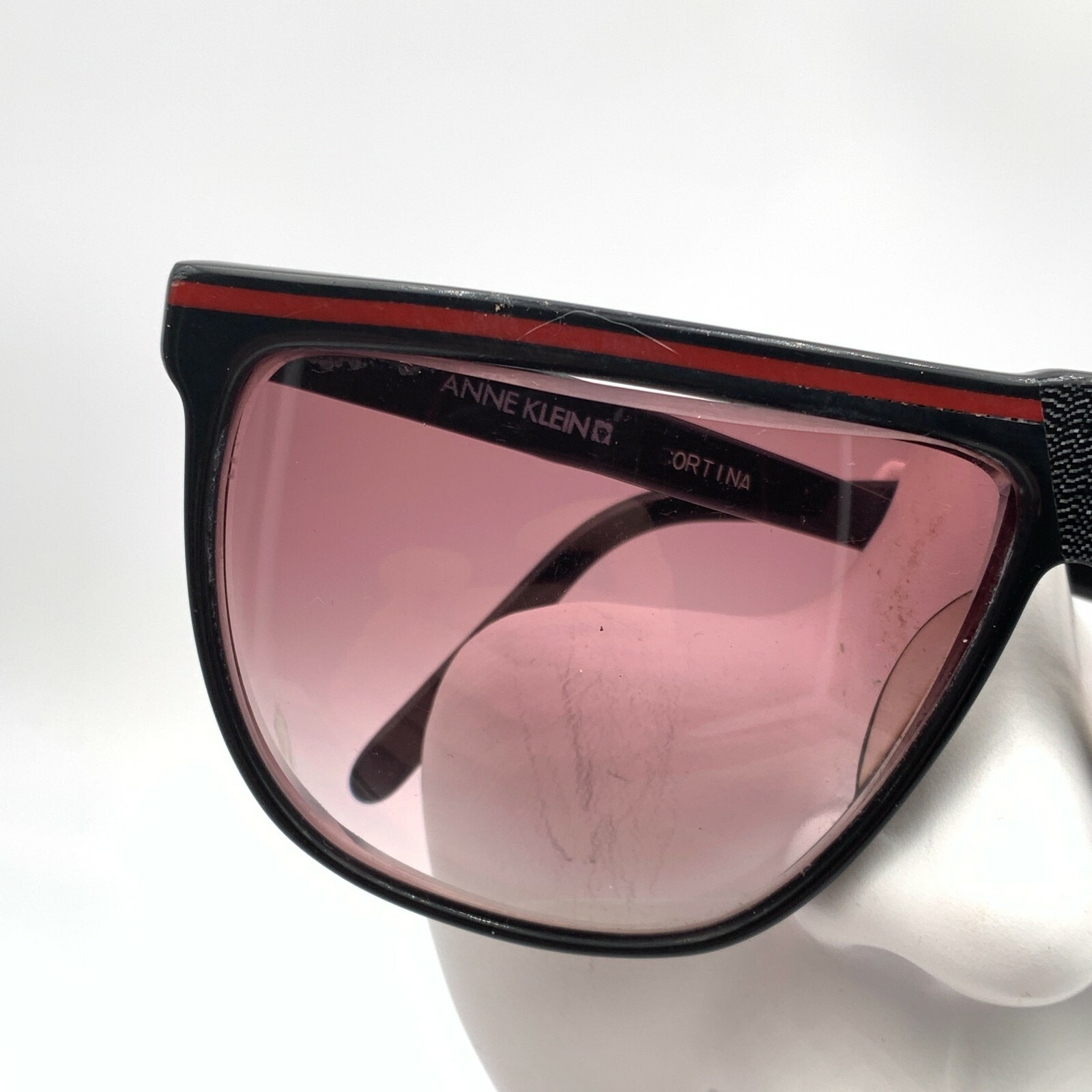 как выглядит Vintage Anna Klein 938 Black Red White Oversized Oval Sunglasses FRAMES ONLY фото