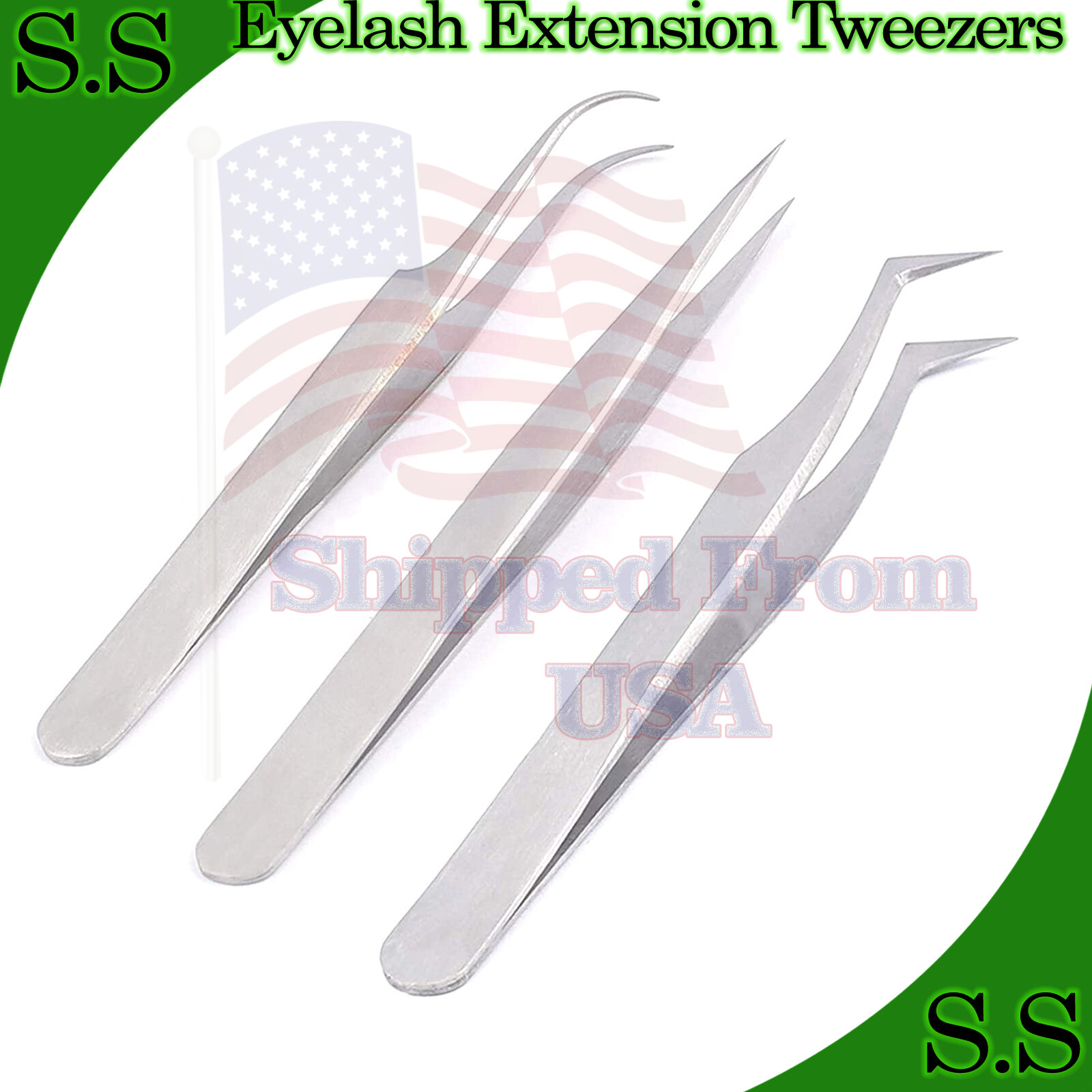 3 Pcs Eyelash Extension Tweezers Straight Curved Stainless Steel Set