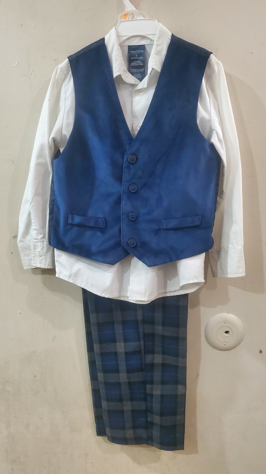 как выглядит Nautica Boys 3Piece Set with Dress Shirt Blue Velvet Vest, and Pants kids size 6 фото