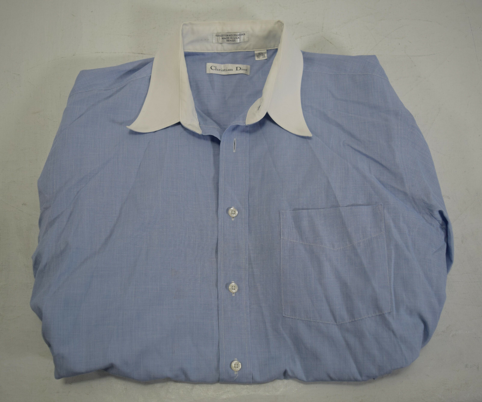 Christian Dior Mens Button Down LS Shirt Blue White 16 1/2 32 -33