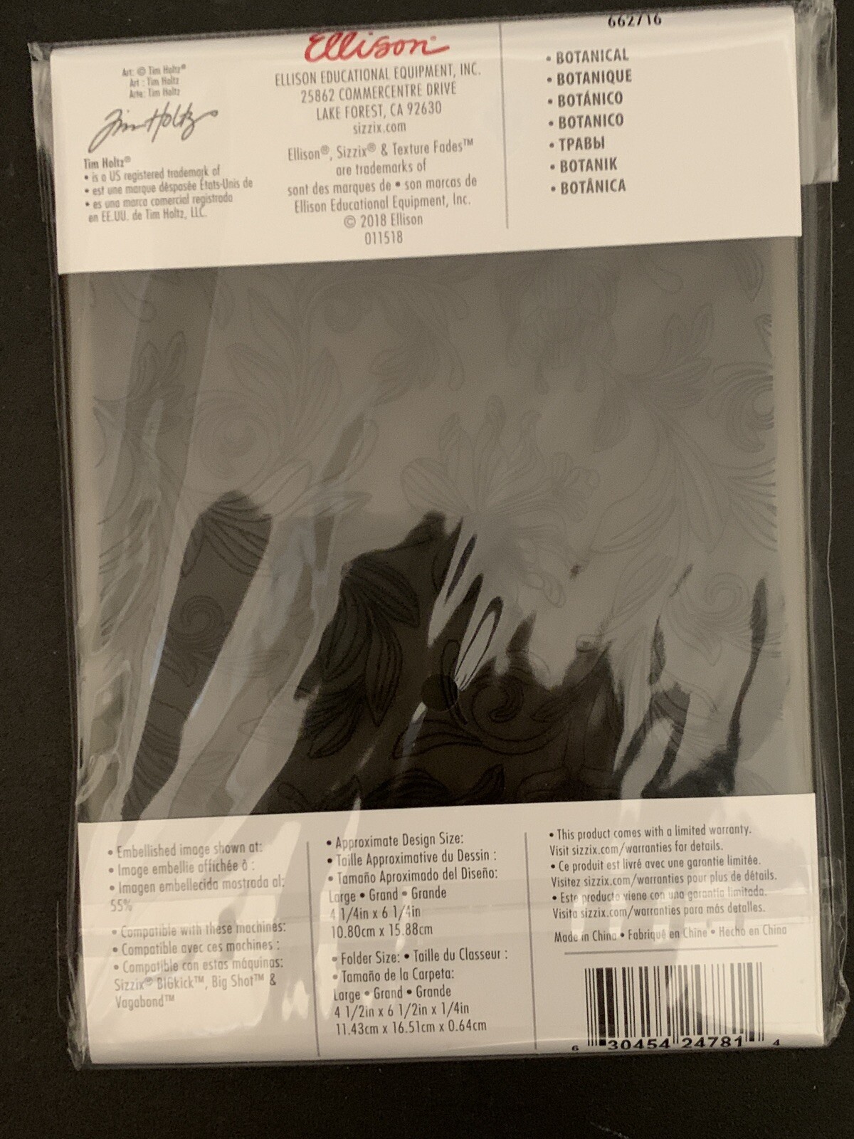 Tim Holtz Sizzix BOTANICAL 3D Texture Fades Embossing Folder 662716 NEW