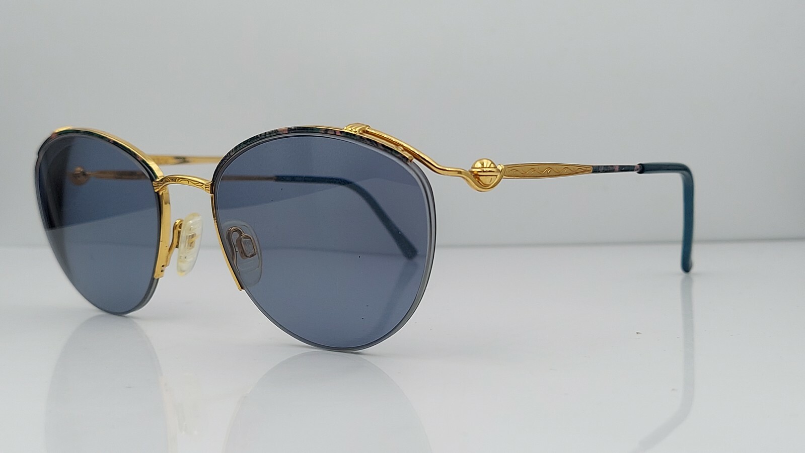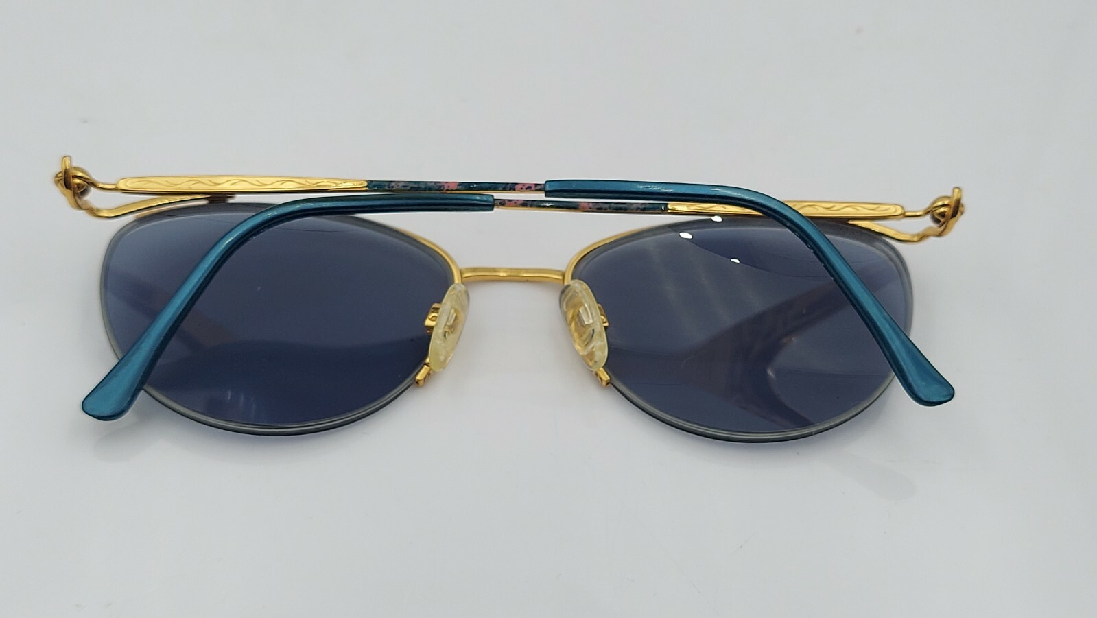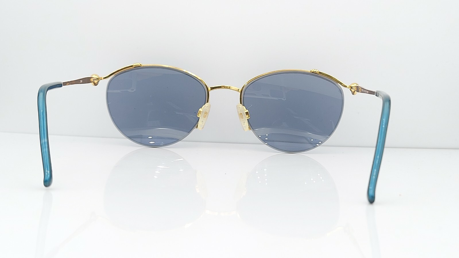 как выглядит Vintage Tura 758 Gold Blue Oval Half Rim Japan Sunglasses FRAMES ONLY фото