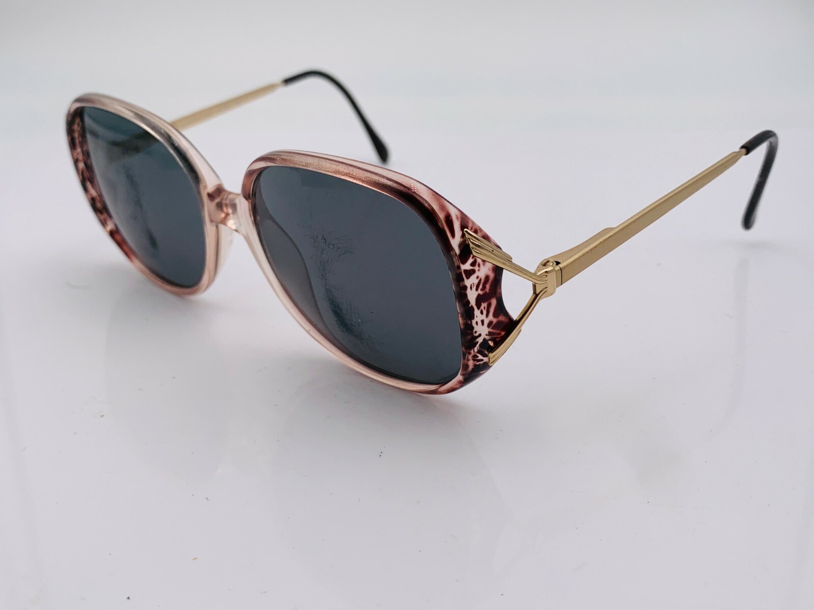 как выглядит Vintage Luxottica Fran Brown Gold Translucent Oval Sunglasses FRAMES ONLY фото