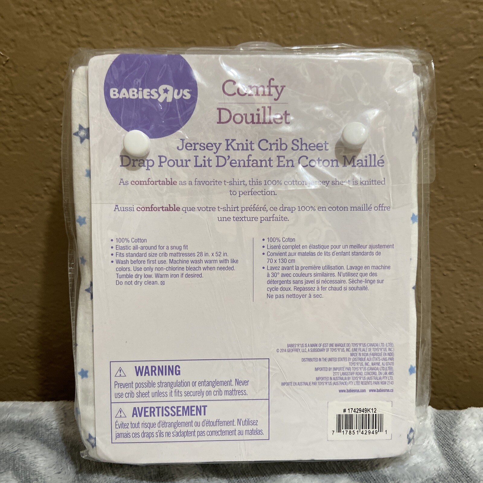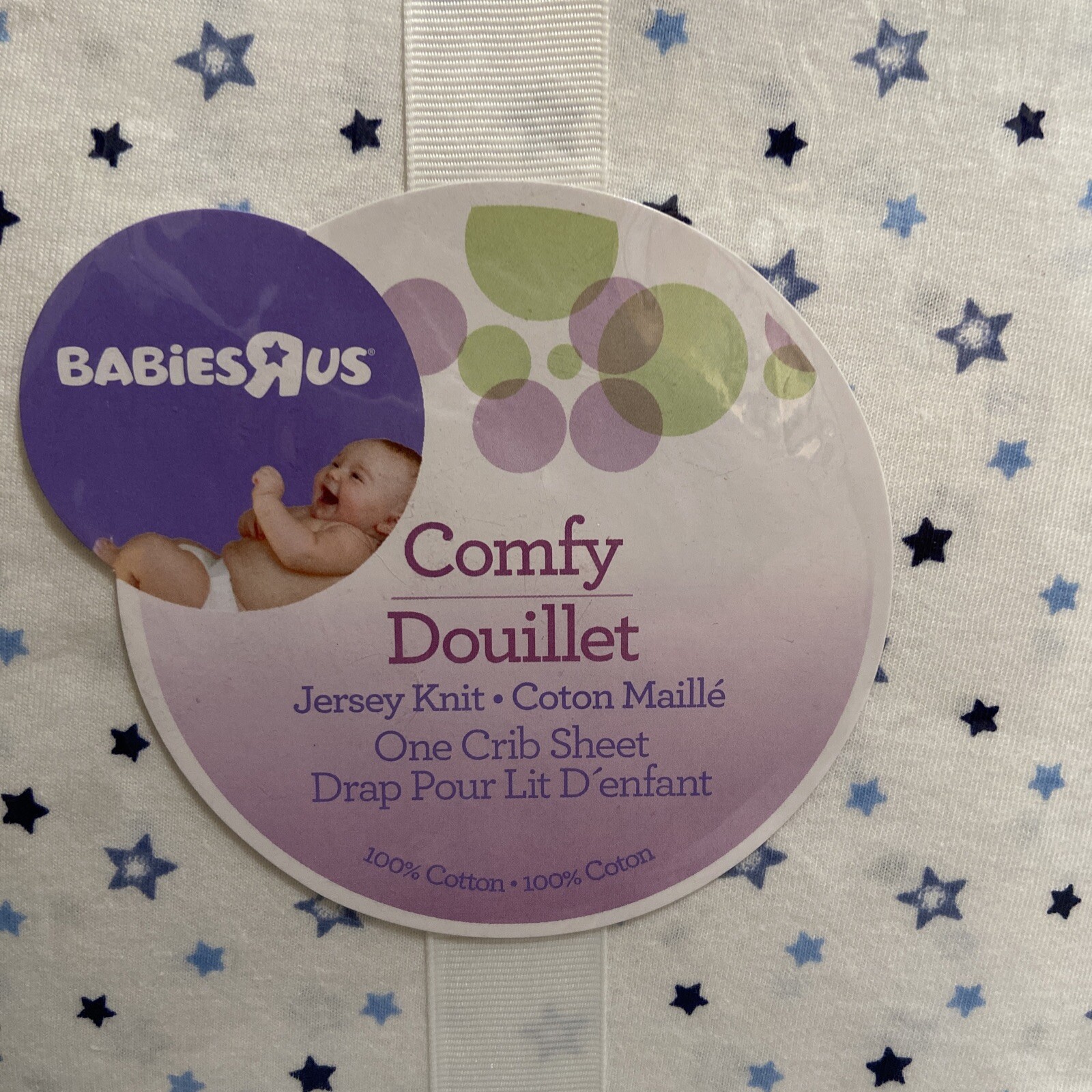Babies R Us Comfy Jersey Knit Baby Crib Sheet - White Blue Stars 100 cotton