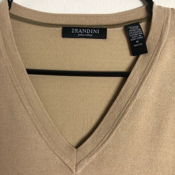 как выглядит Brand New Brandini Men Pima Cotton V-Neck Tan Sweater Size M фото