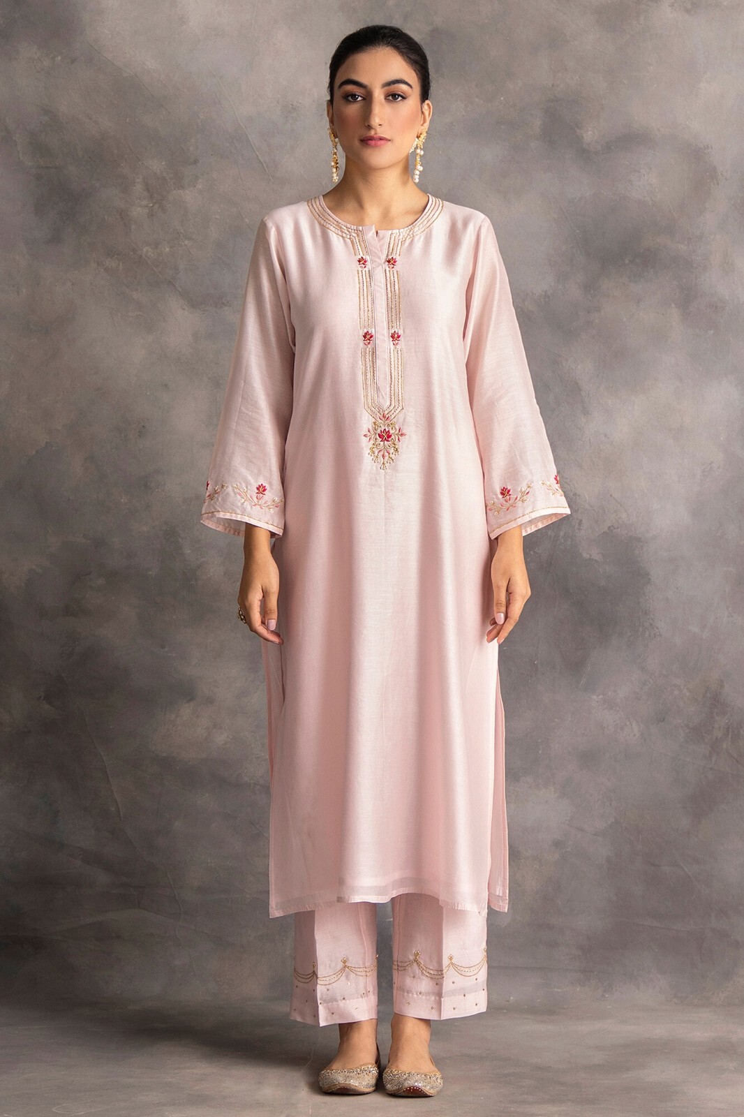 как выглядит Baby Pink Color Chanderi Silk Kurta Set фото