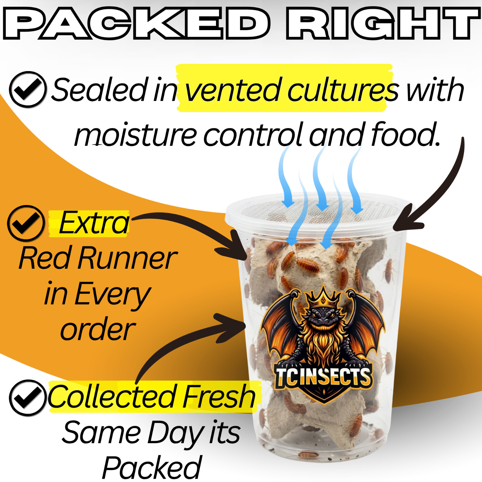 100 Turkestan Red Runner Blatta Lateralis Feeder Roaches Dubia Crickets Worms