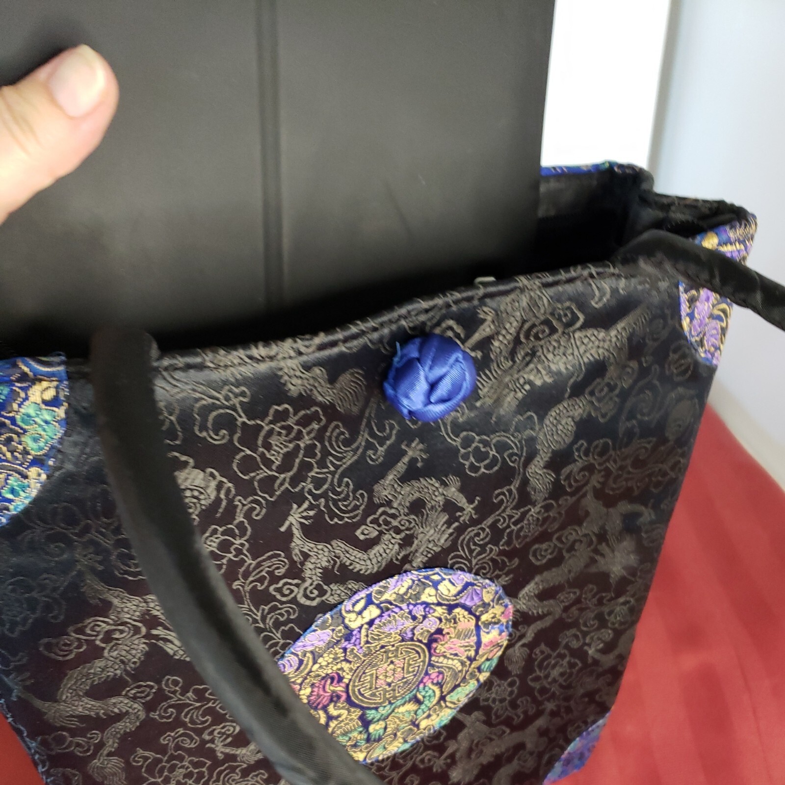 как выглядит Chinese Silk Embroidered Handbag Large Black And Blue фото