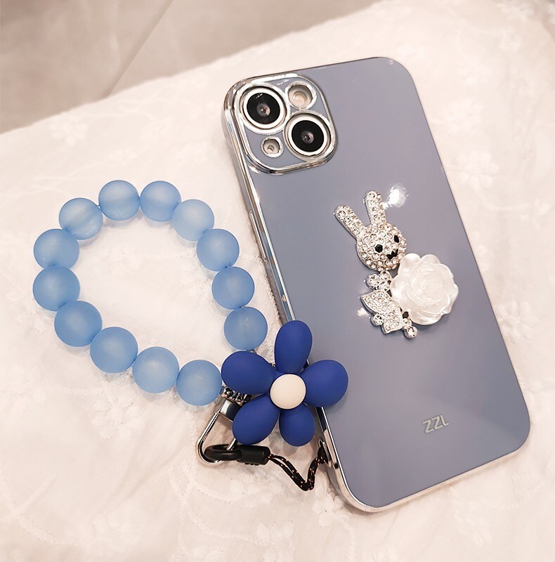 Blue Frosted Flower Phone Strap