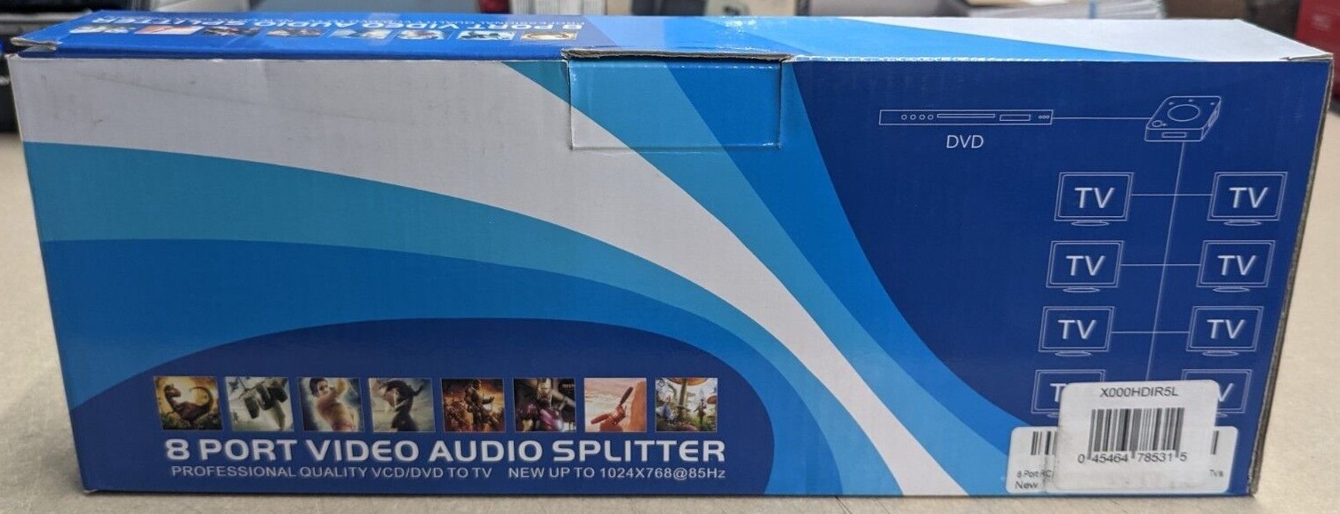 8 Port Video and Audio Splitter, 1 AV input, 8 Output Simultaneously, Black