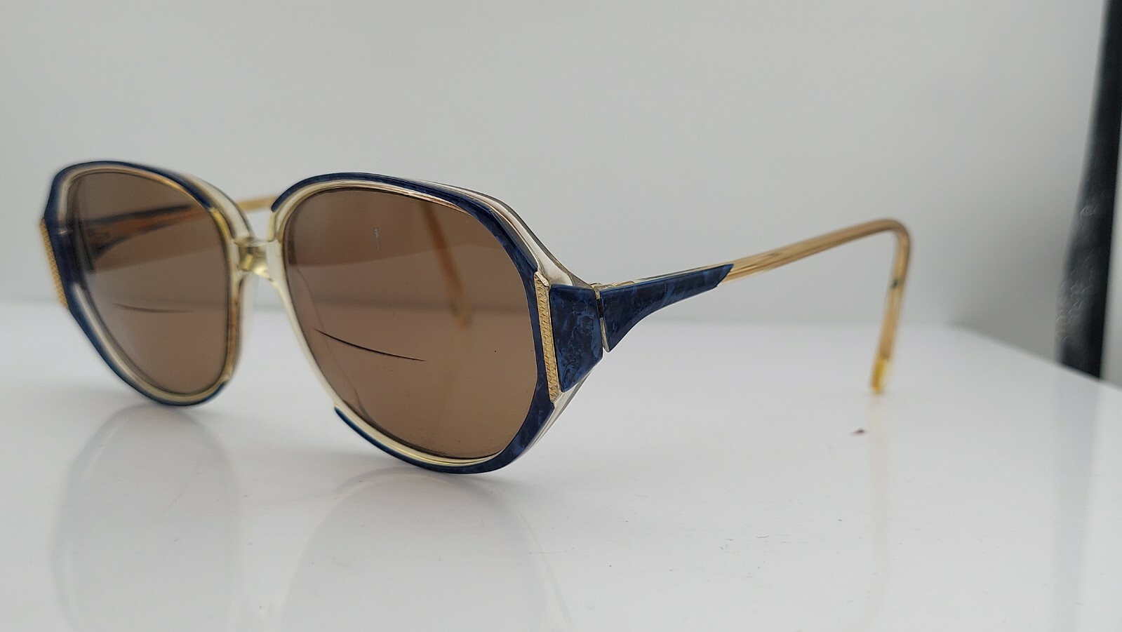 как выглядит Vintage Gloria Vanderbilt Blue Gold Oval Sunglasses FRAMES ONLY Hong Kong фото