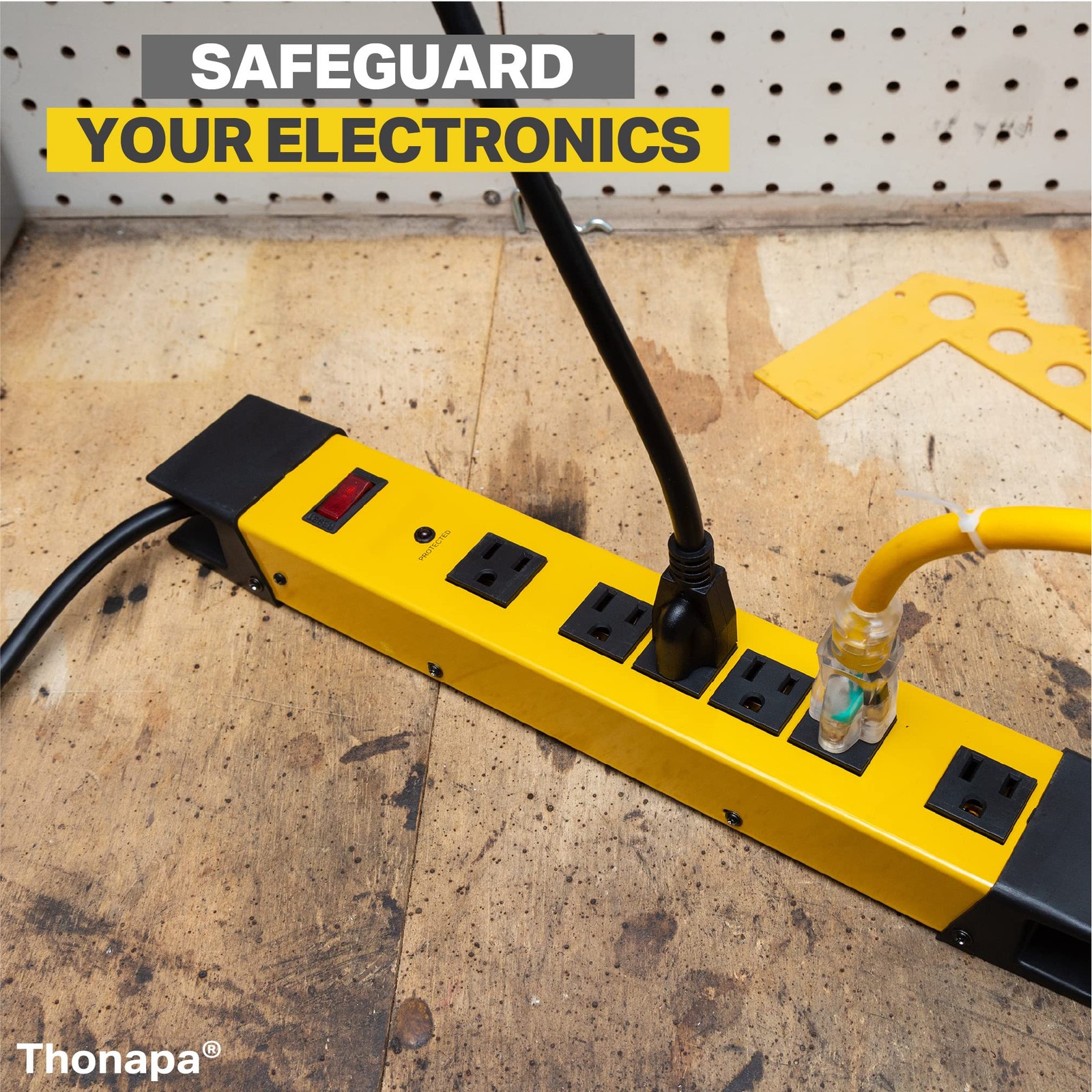Heavy Duty Surge Protector Power Strip, 6 Outlet 14/3 SJT Black and Yellow Metal