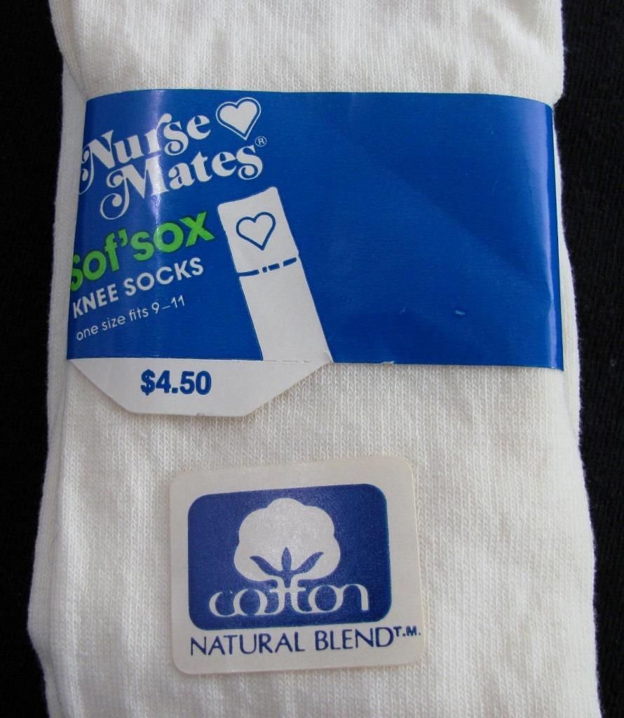 VTG NOS Ladies Nurse Mates sof'sox White Blue Heart Knee High Socks School Girl
