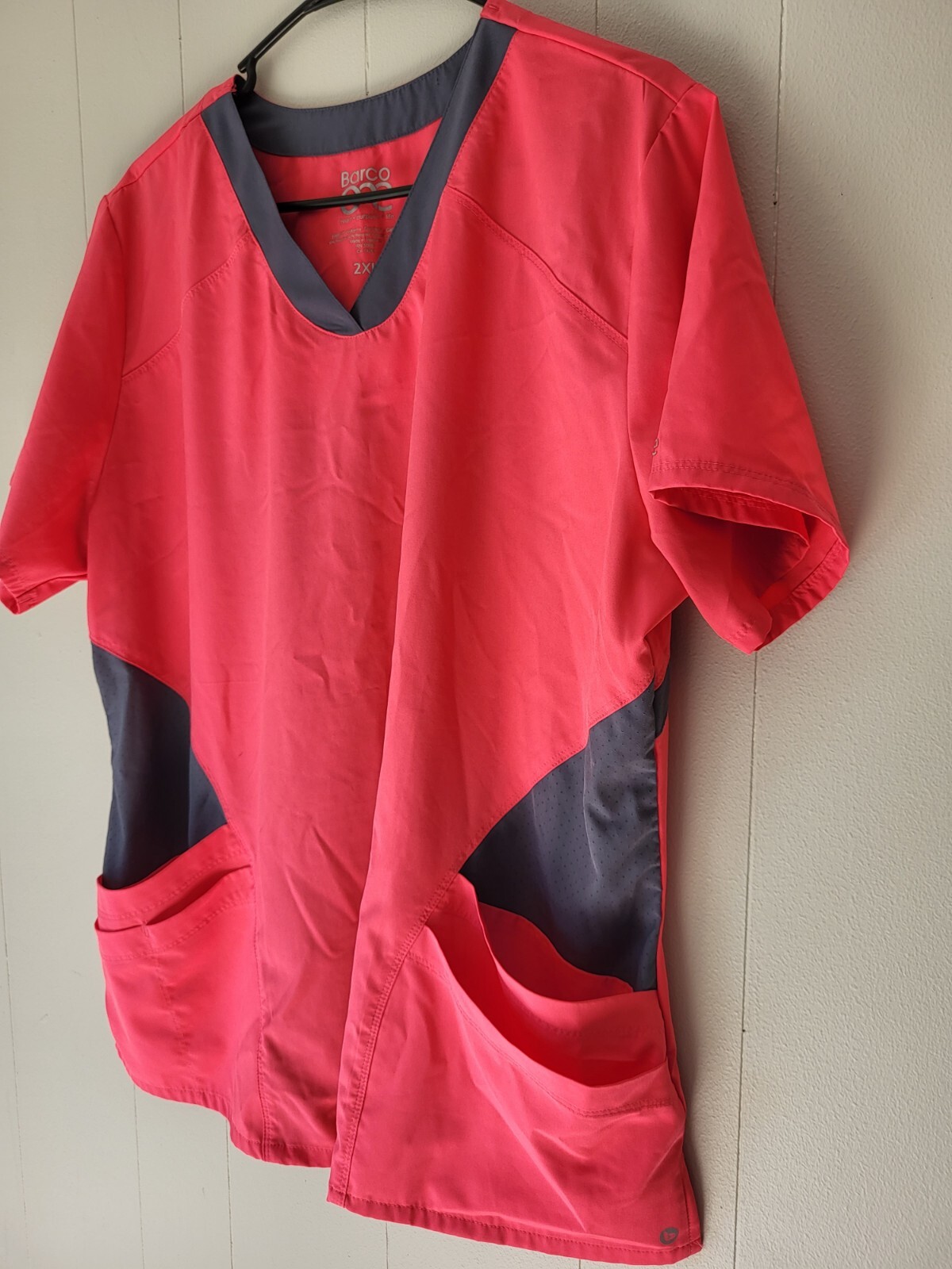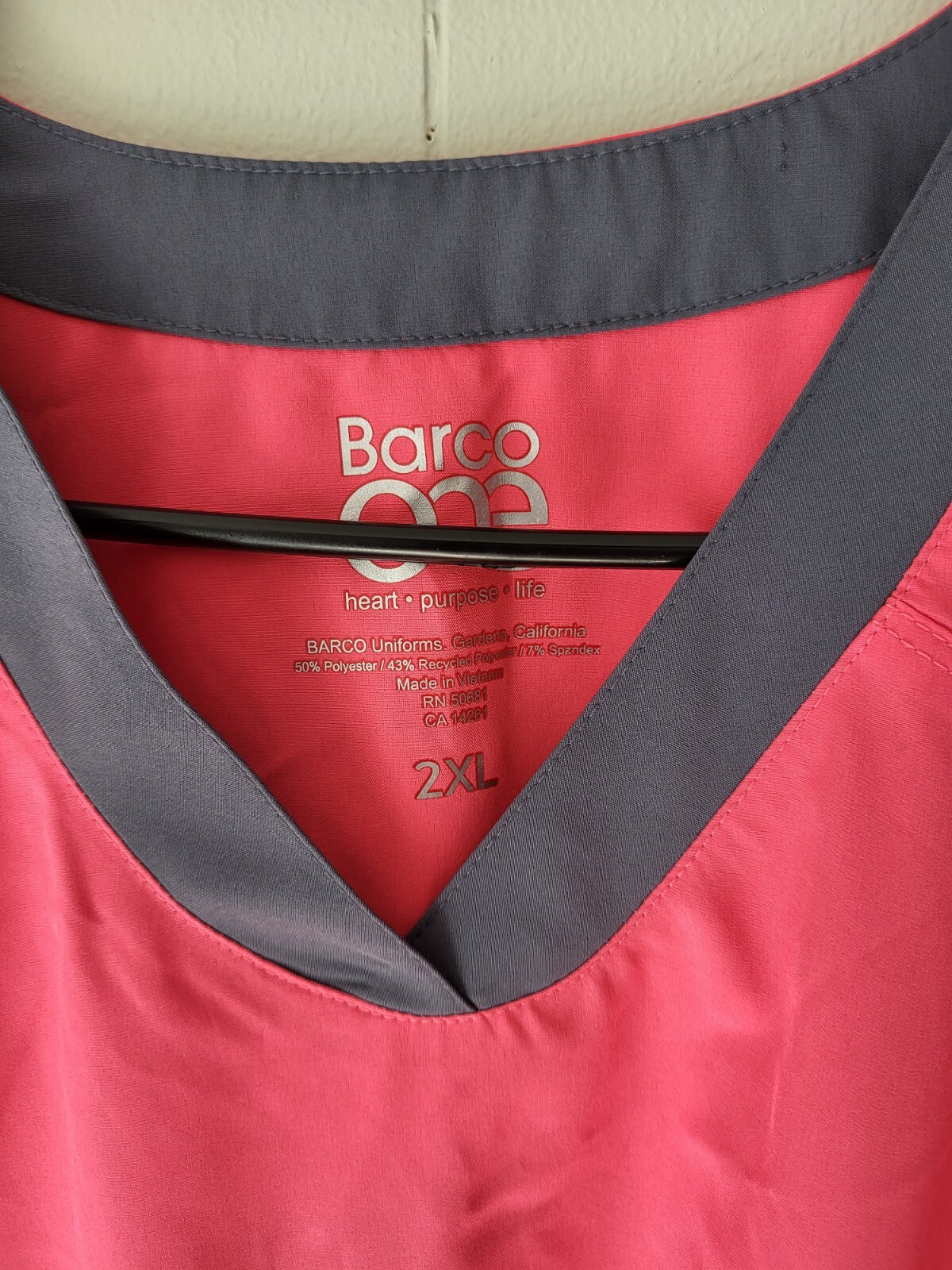 Barco One Women Short Sleeve Pink Medical Scrub Shirt Size 2XL.