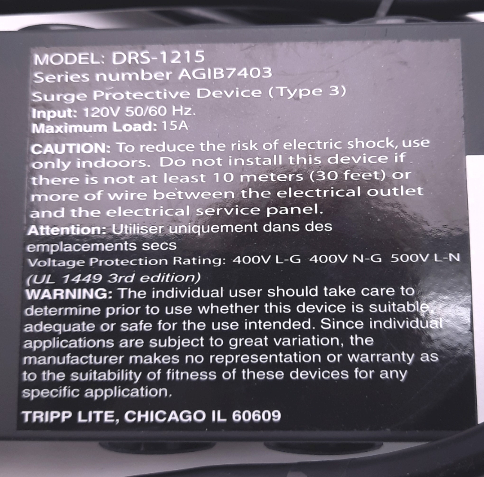 Tripp Lite DRS-1215 Network Surge Protector 1U, 120v AC 15A, 3000J, 14 Outlets