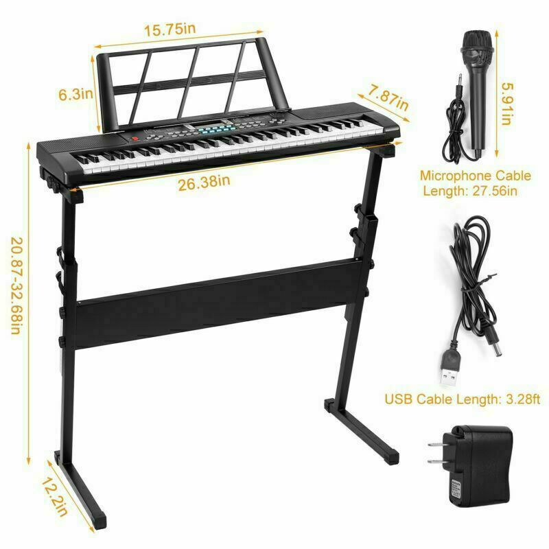 Digital Piano 61-Key Musical Electronic Keyboard Instrument w/Stand Mic Kid Gift