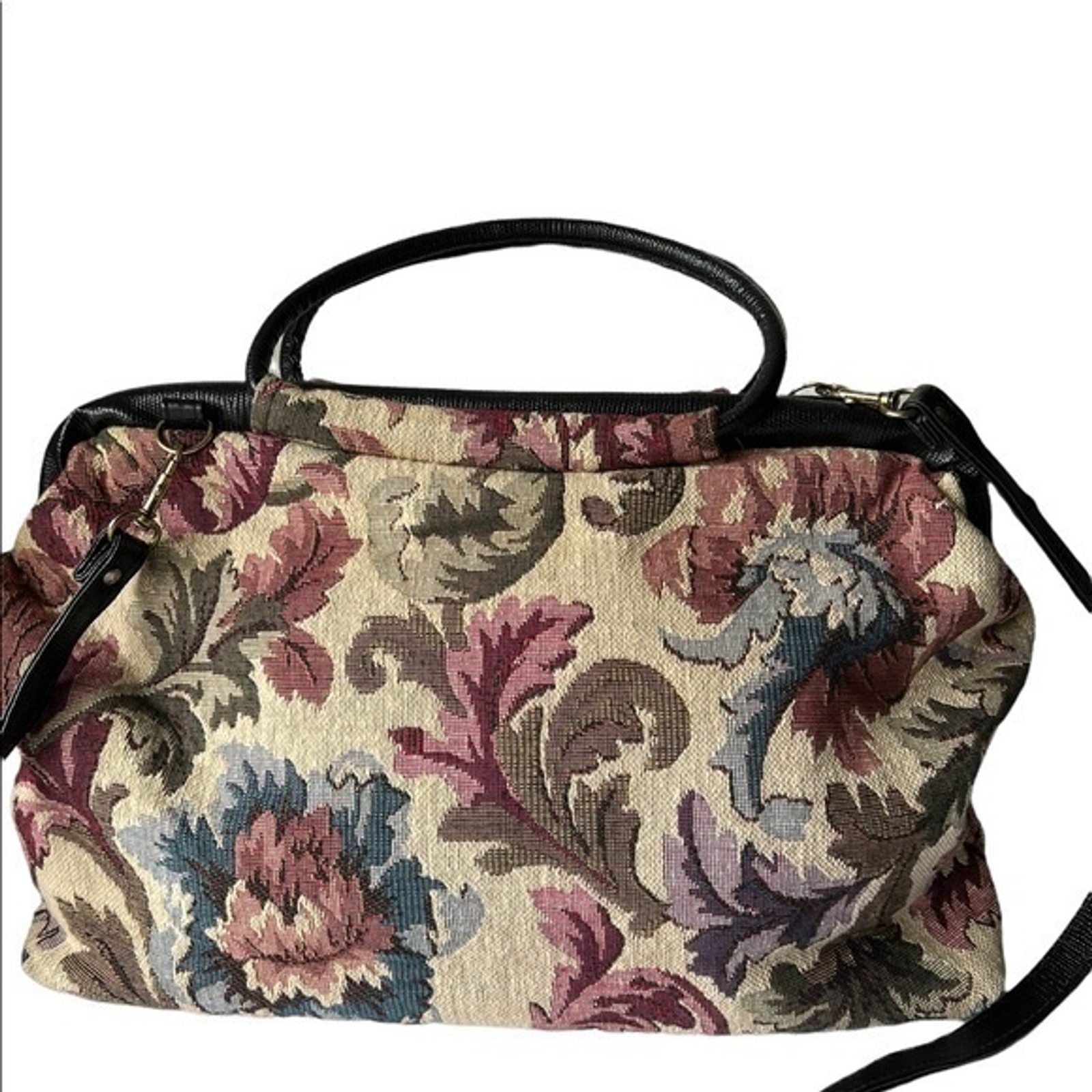 как выглядит Vintage 70s Victorian Floral Tapestry Colorful Traveler Handbag фото