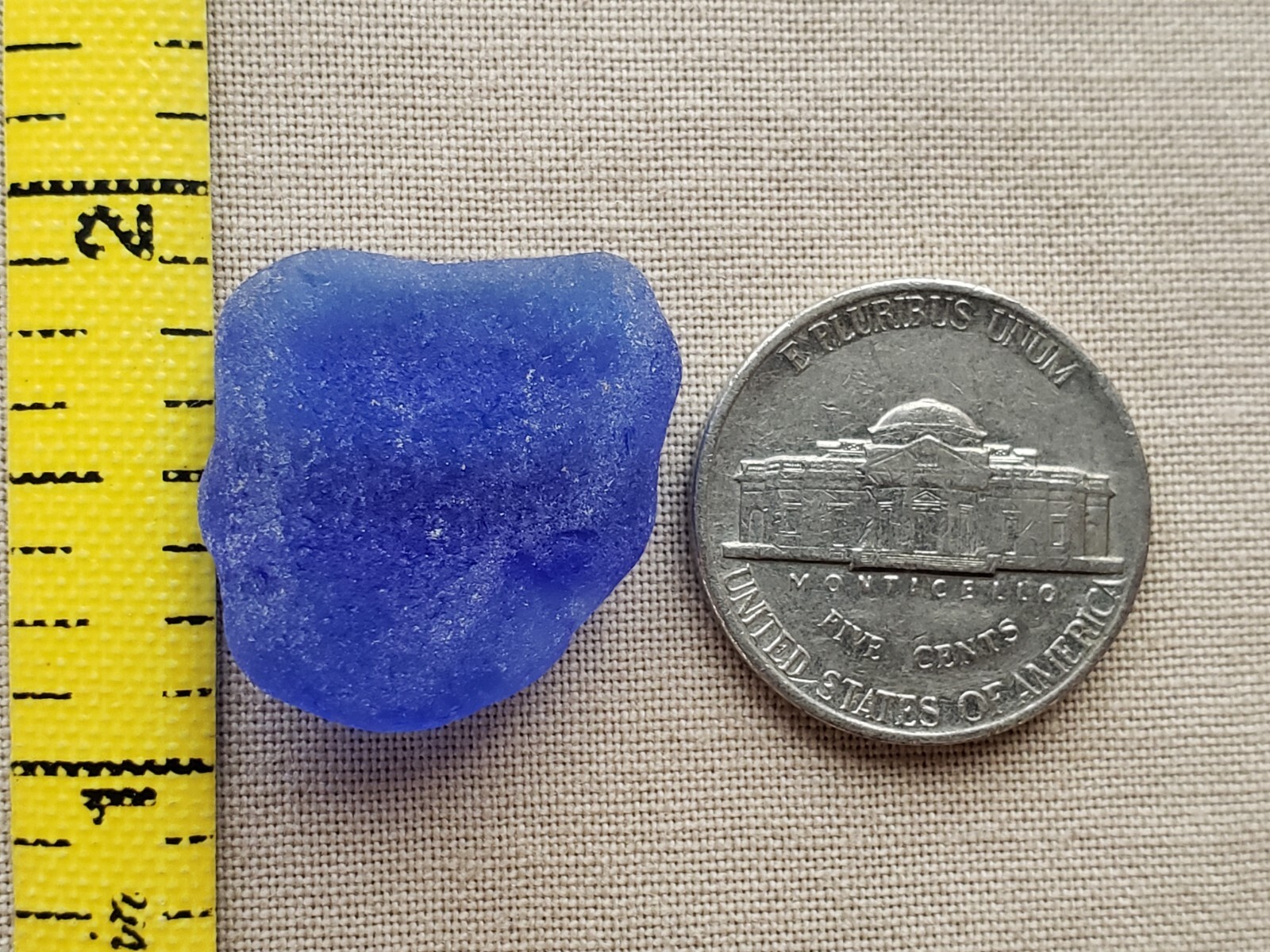 PURE BEACH SEA GLASS SURF TUMBLED COBALT BLUE OCEAN FROSTED NECK LIP MEDIUM D4