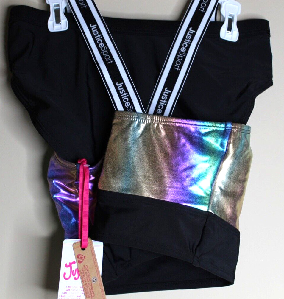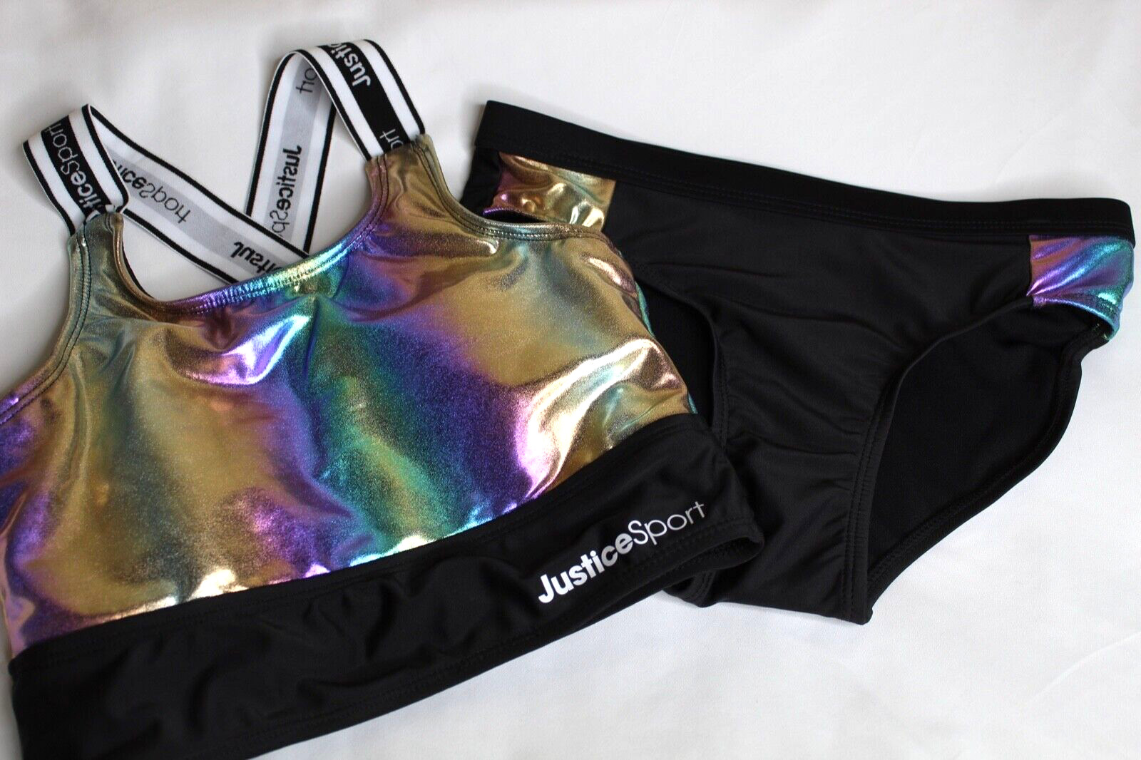 Justice Girls 2 Pc Size M 10 Sport Bikini w/ Logo Accents Swimsuit BLACK