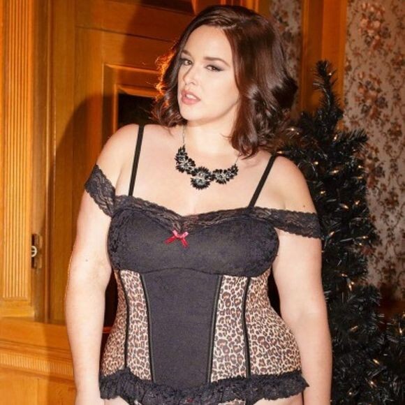 как выглядит Coquette Leopard Black Lace Corset Lingerie 3x/4x фото