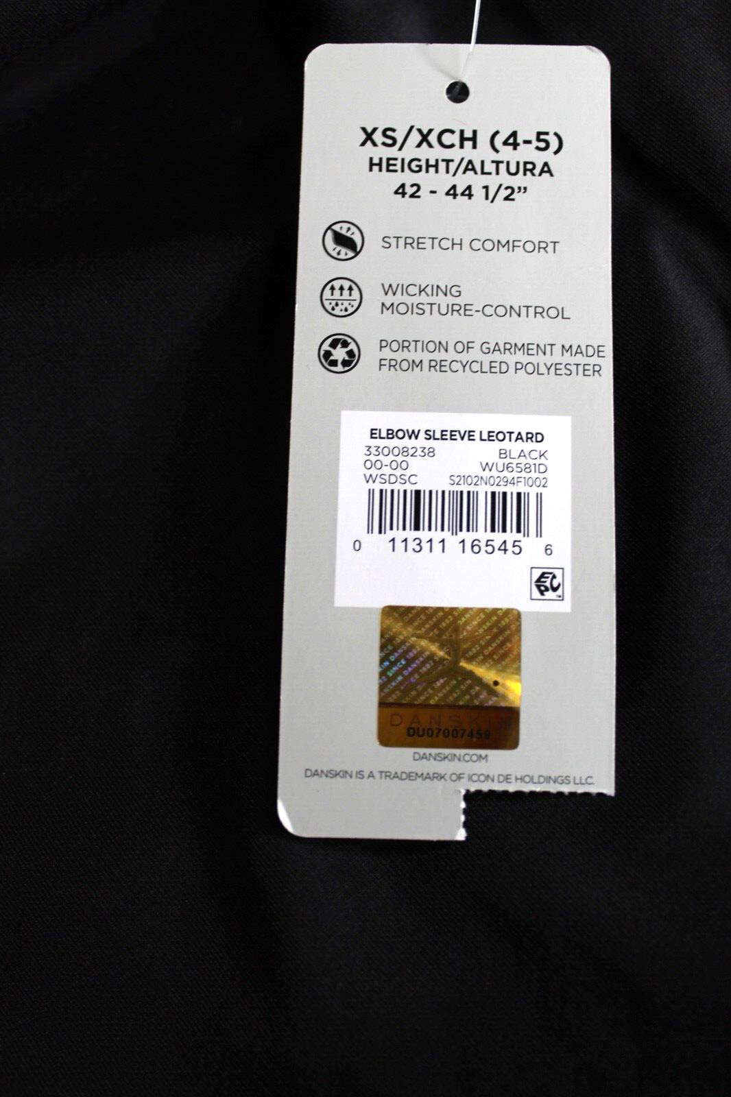 Danskin Black Elbow Sleeve Leotard XS 4-5 New with Tag