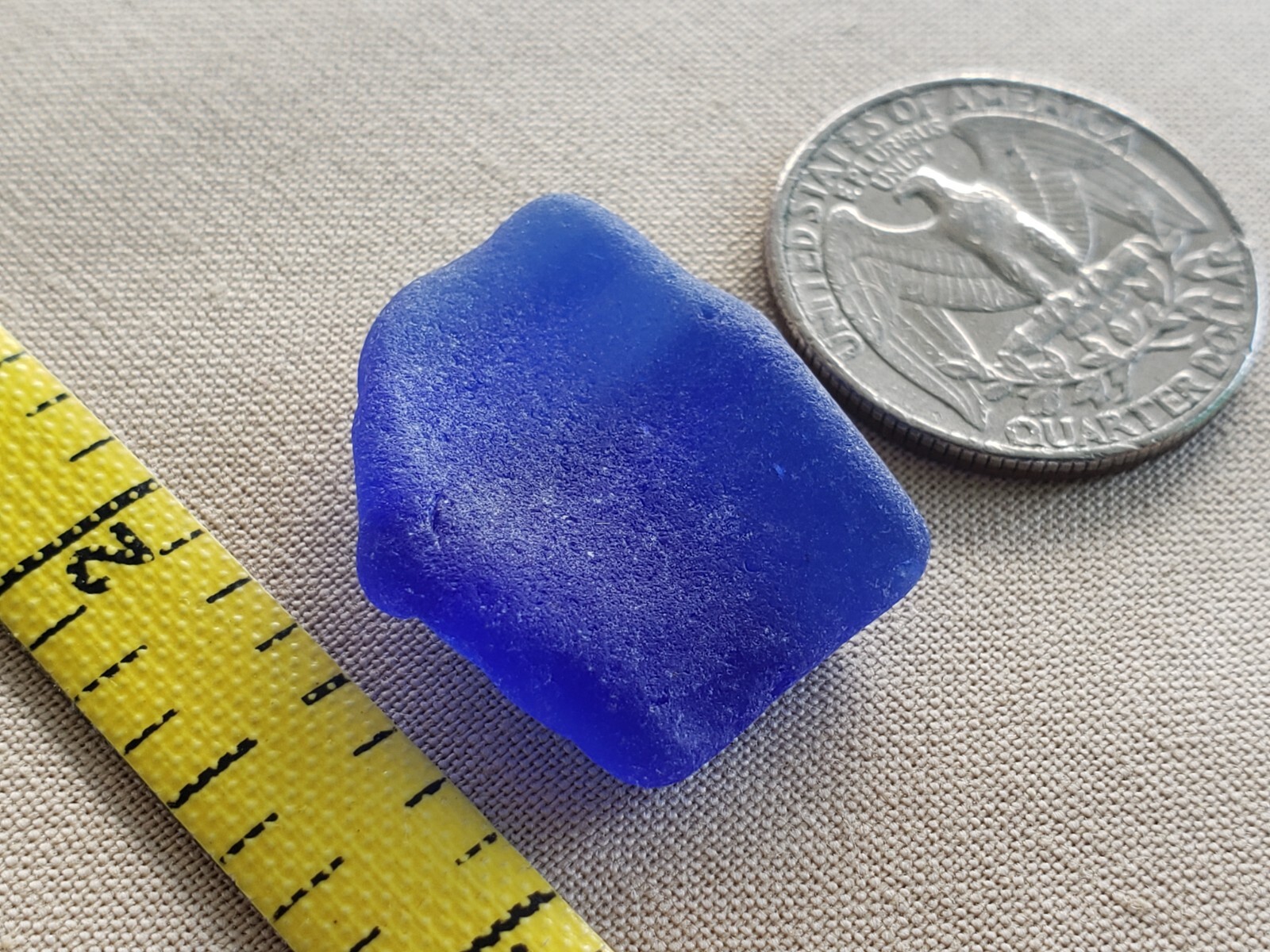 GENUINE BEACH SEA GLASS SURF TUMBLED COBALT BLUE NECK LIP FROSTED PENDANT J1