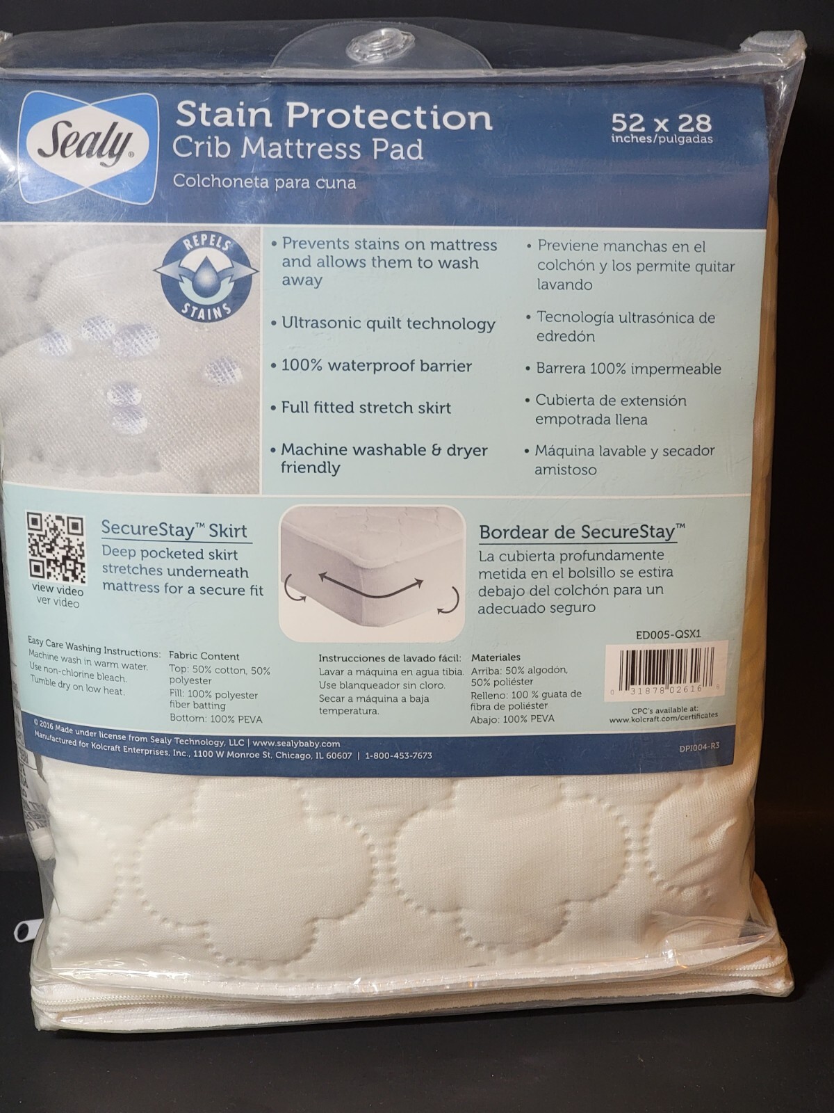 Sealy Stain Protection Crib Mattress Pad 52x28