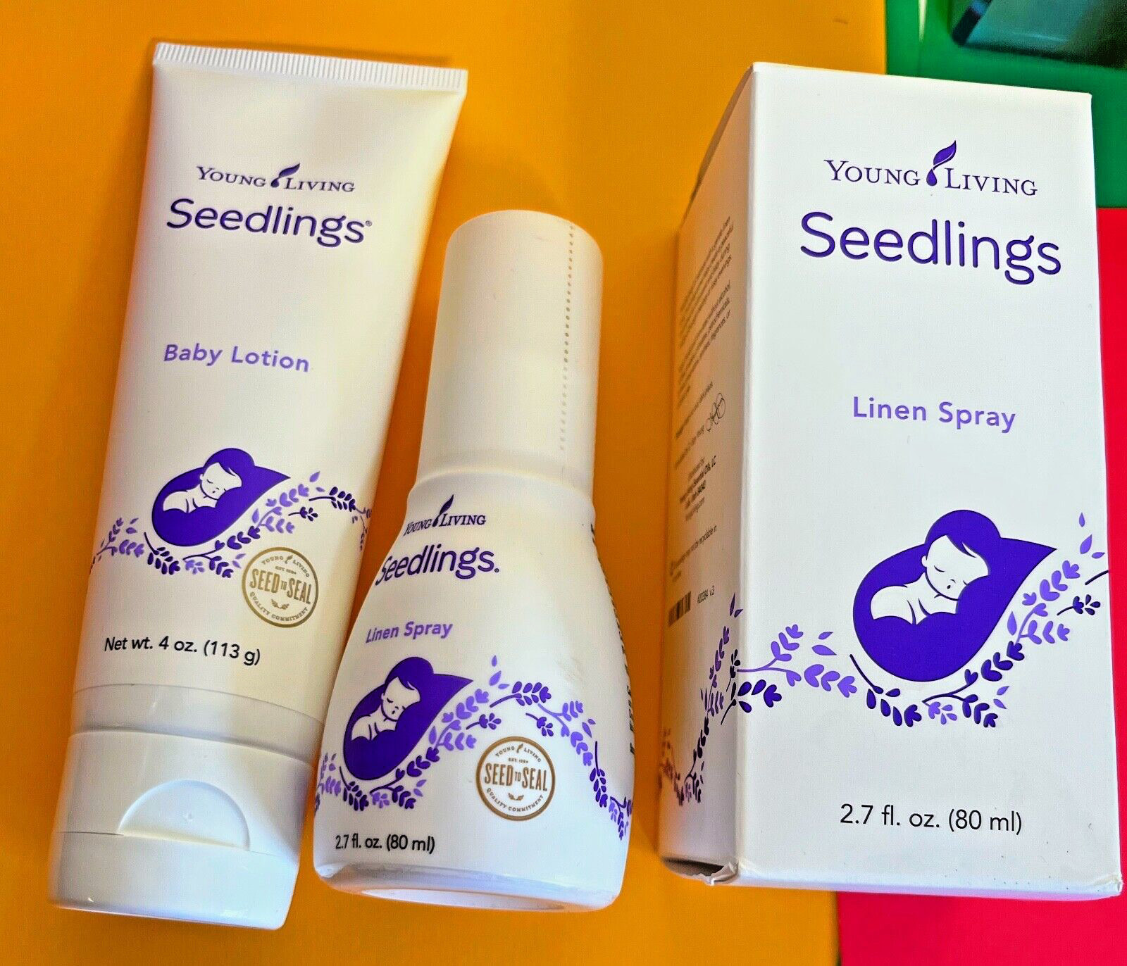 Young Living 2 Seedlings Linen Spray 2.7 fl oz Bottle Box 1 Lotion MIKEY.