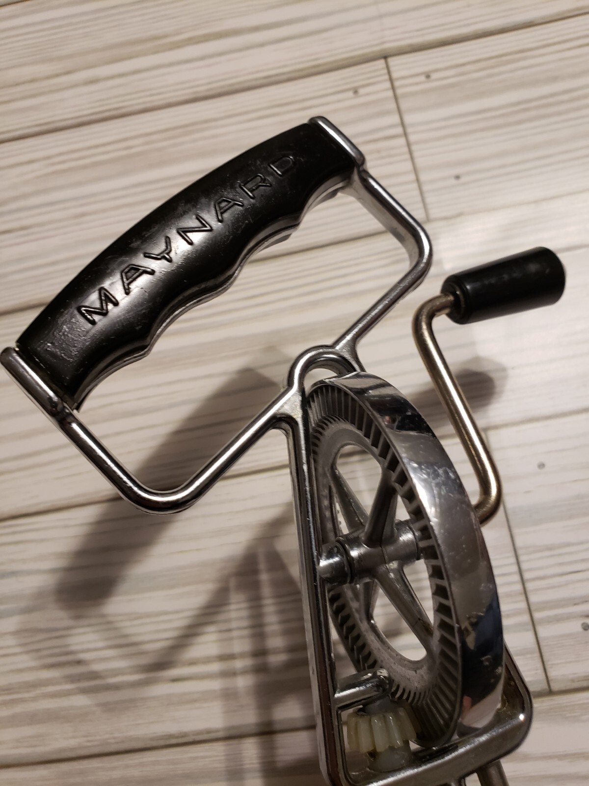 Vintage Maynard Handheld Mixer/ Eggbeater Black Plastic Handle