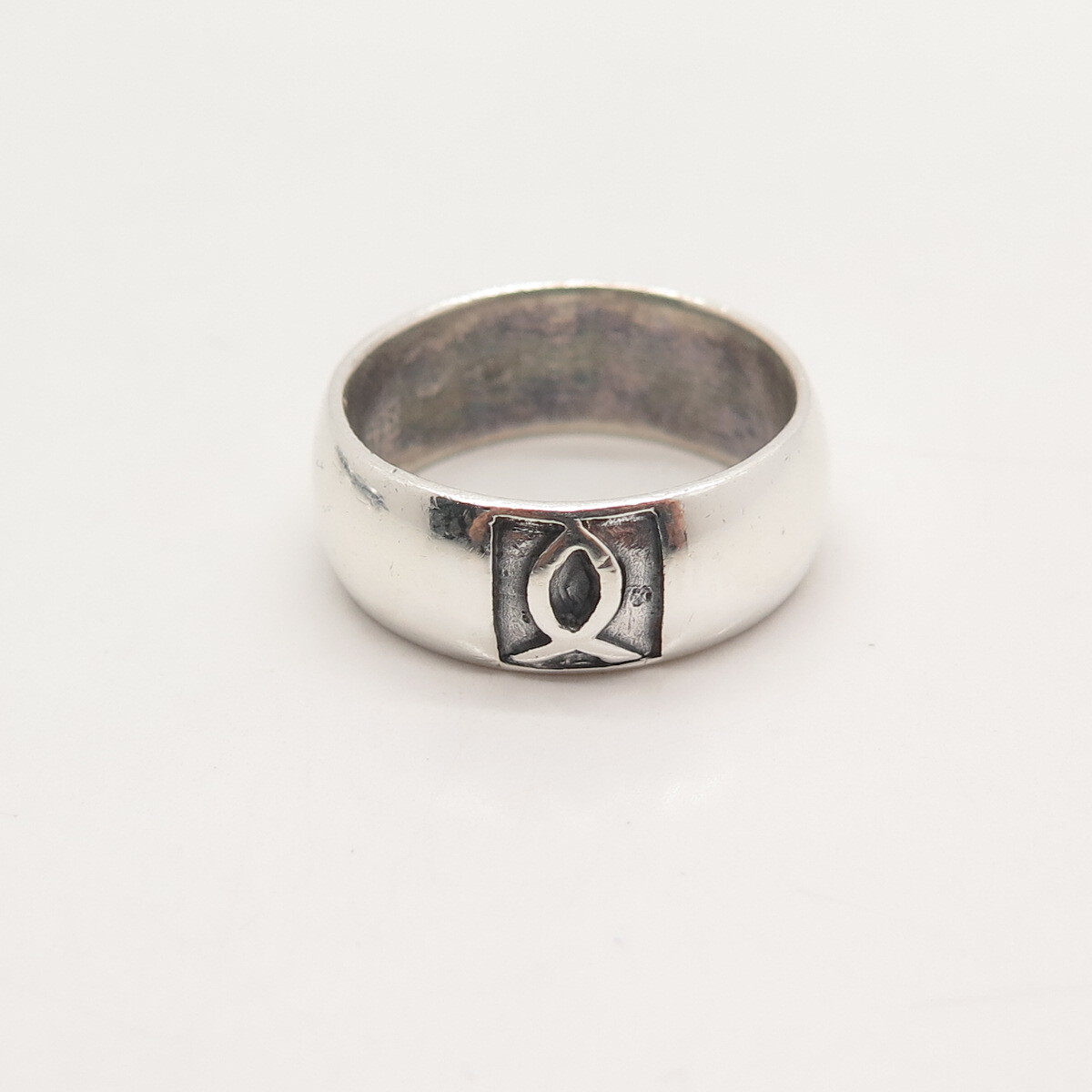 925 Sterling Silver Vintage Ichthys Fish Band Ring Size 5