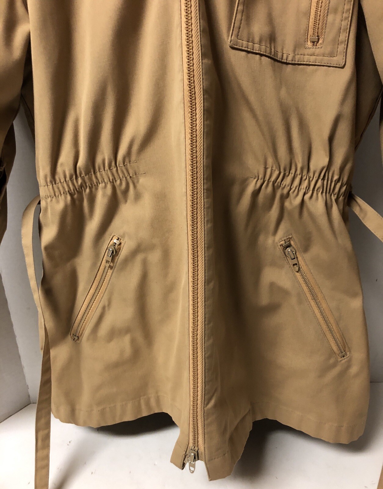 Vintage London Fog Women s Hooded Jacket Parka Fully Lined Waist Tie Size 7/8