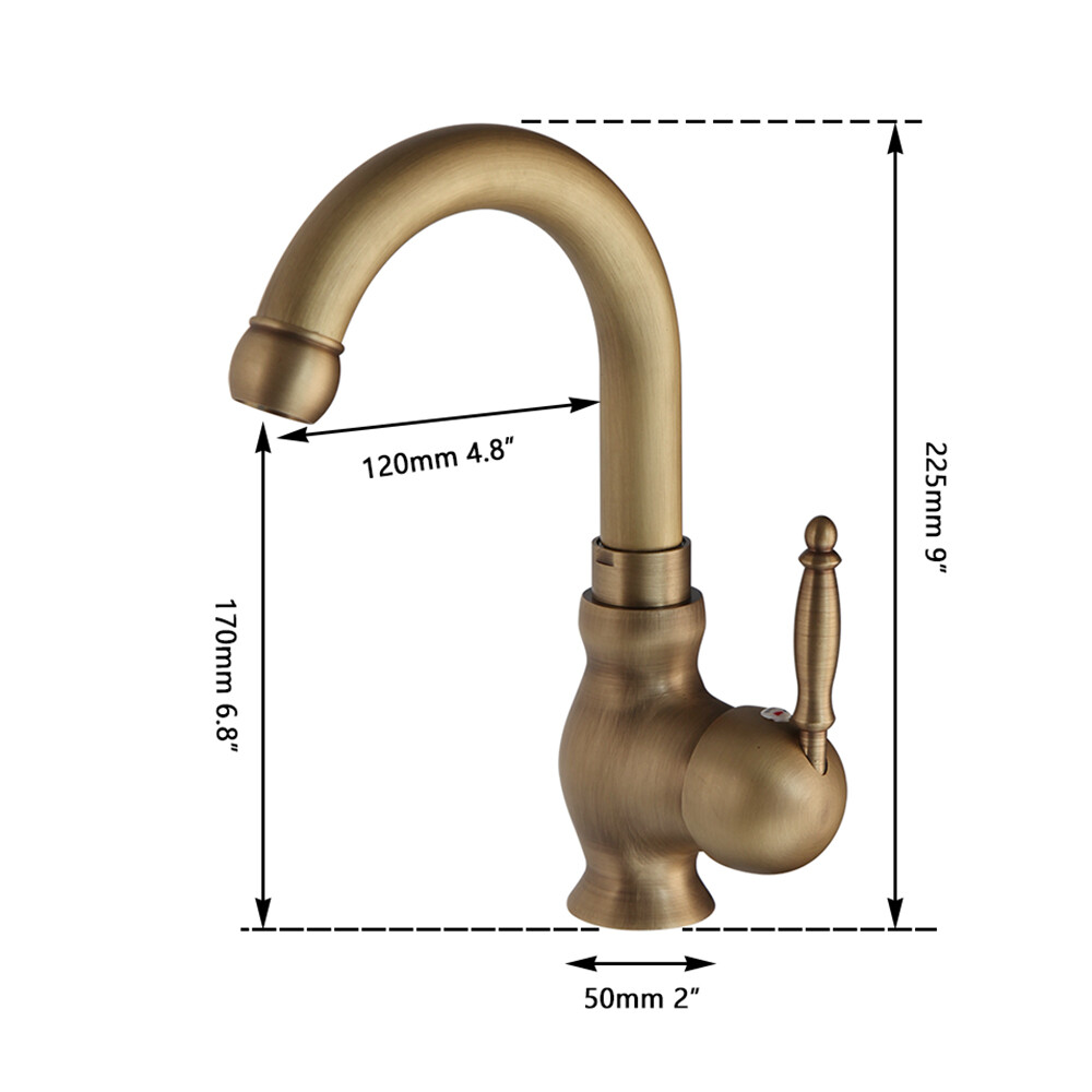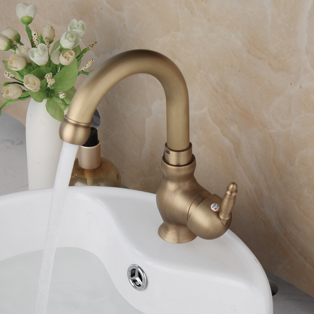 Antique Brass Bathroom Sink Faucet Single Handle Deck Mounted Mixer Basin Tap