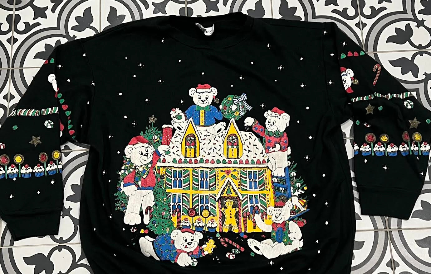Vintage 1980s Bear Family Christmas Ugly Sweater Sweatshirt Party Sweatshirt L