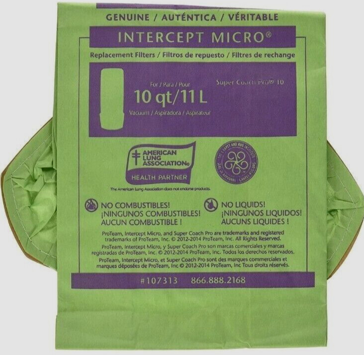 Genuine ProTeam Super Coach Pro 10 Micro Filter Vacuum Bags 107313 Back Pack Vac