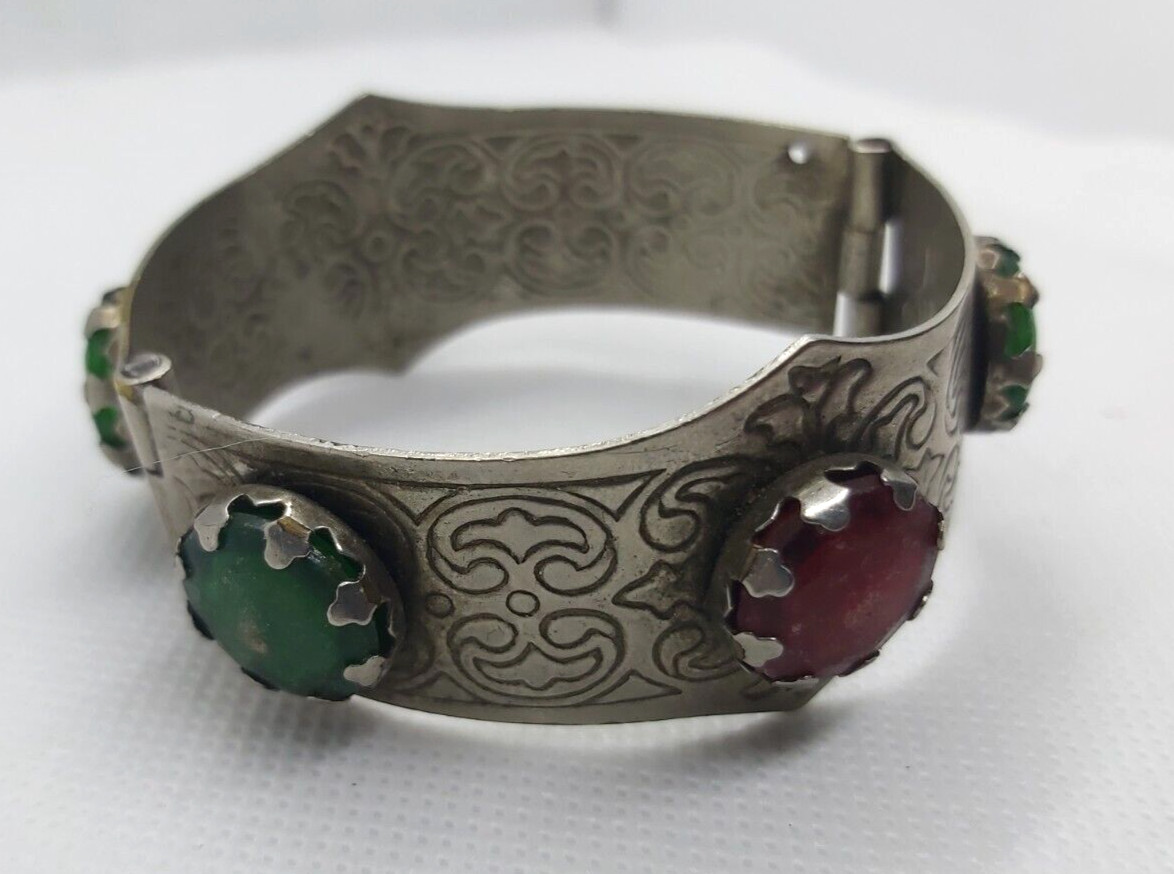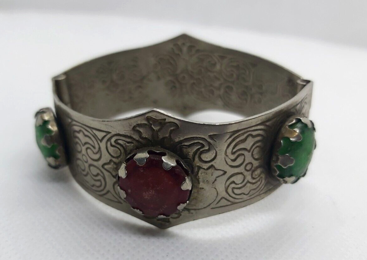 Vintage African Benin Nomadic Tuareg Tribal Color Silver Bracelet Cuff Engraved