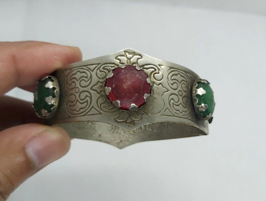 как выглядит Vintage African Benin Nomadic Tuareg Tribal Color Silver Bracelet Cuff Engraved фото