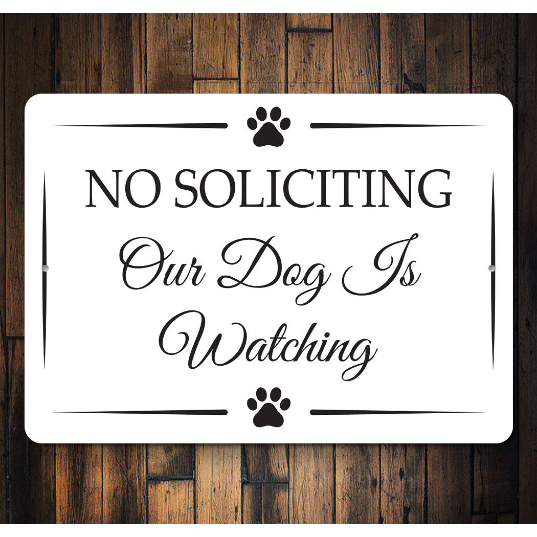 No Soliciting Dog Is Watching Metal Sign Pet Animal Lover Themed Decor Canine K9