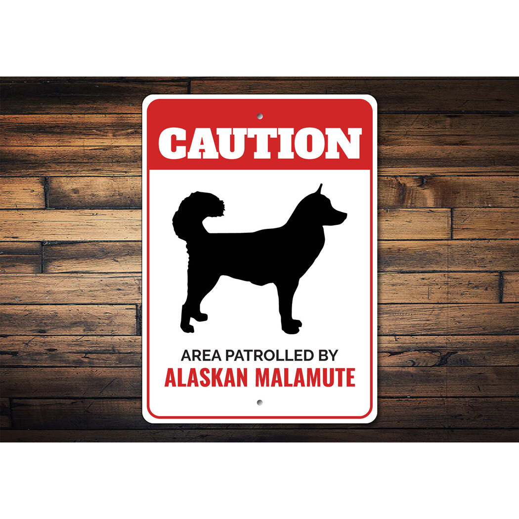 Patrolled By Alaskan Malamute Caution Metal Sign Kennel Breed Canine K9 Paw