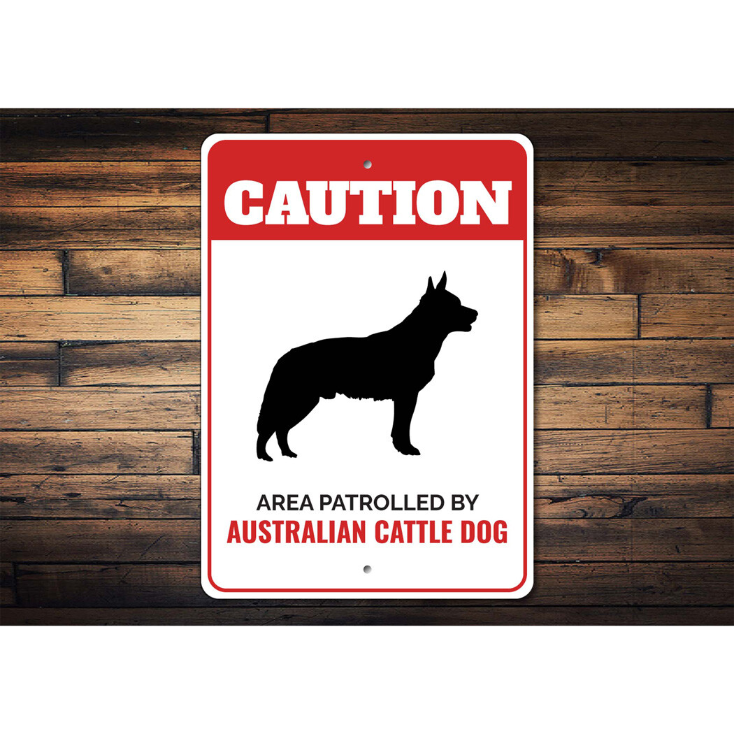 Patrolled By Australian Cattle Dog Caution Metal Sign Kennel Breed Canine K9 Paw
