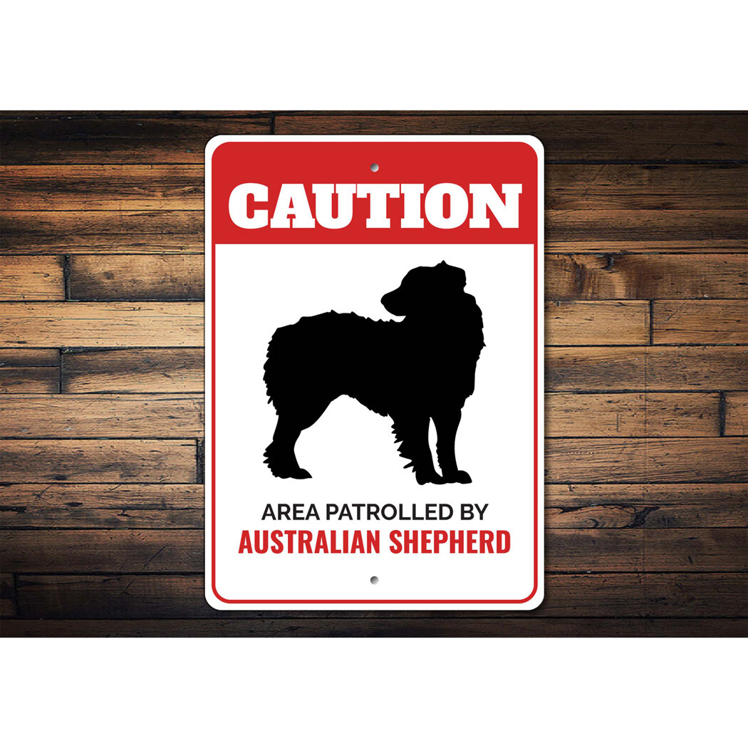 Patrolled By Australian Shepherd Caution Metal Sign Dog Canine K9 Pet Animal