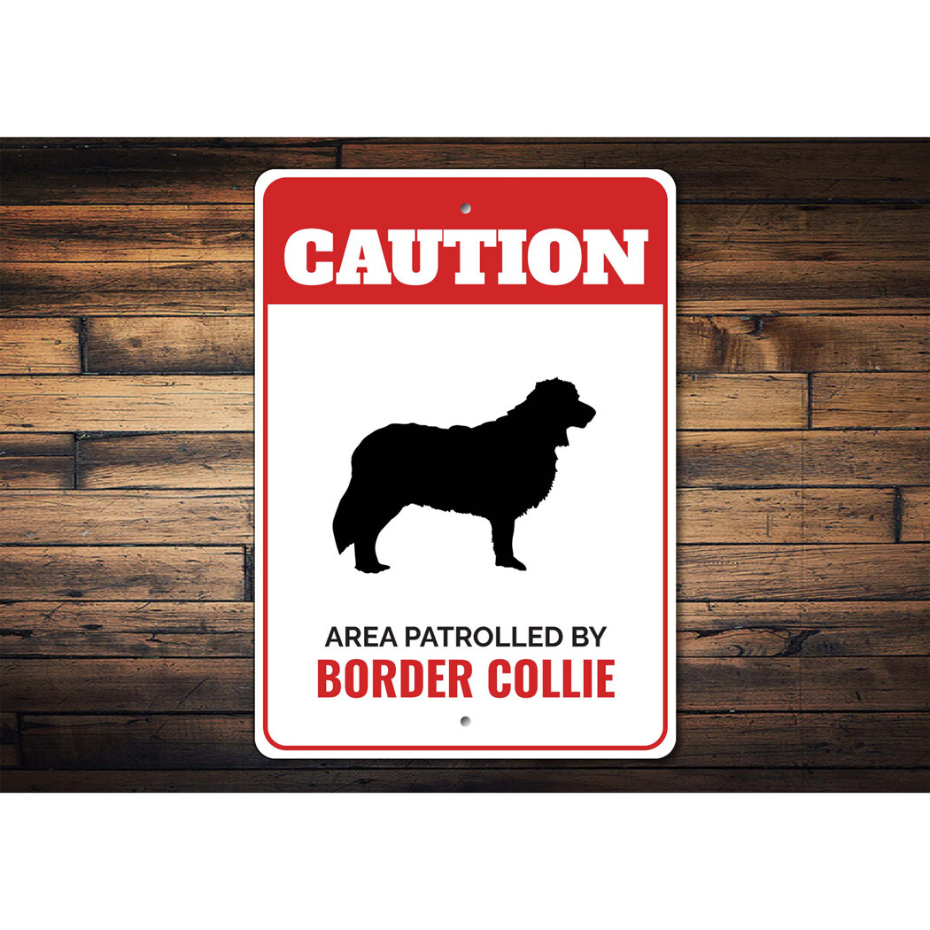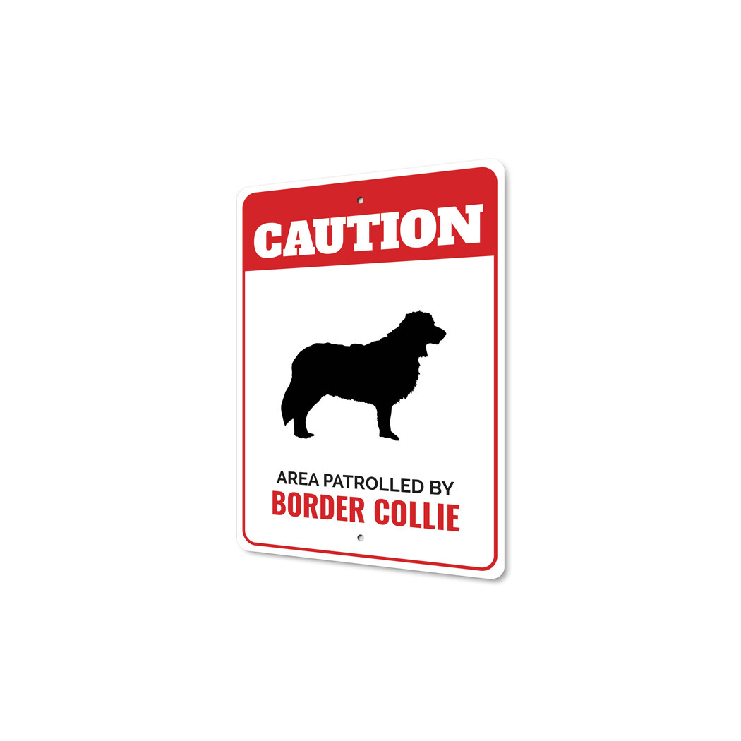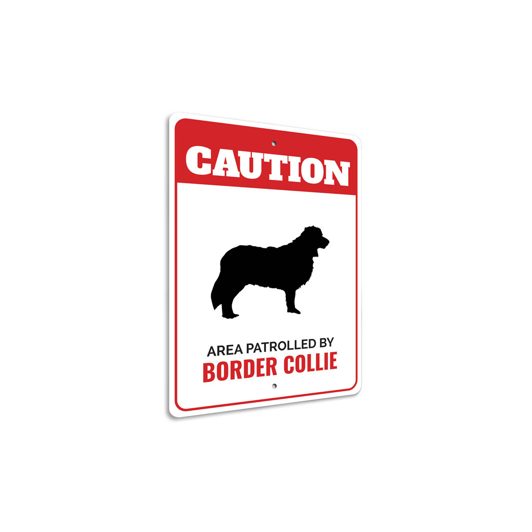 Patrolled By Border Collie Caution Metal Sign Dog Kennel Breed Canine K9 Paw