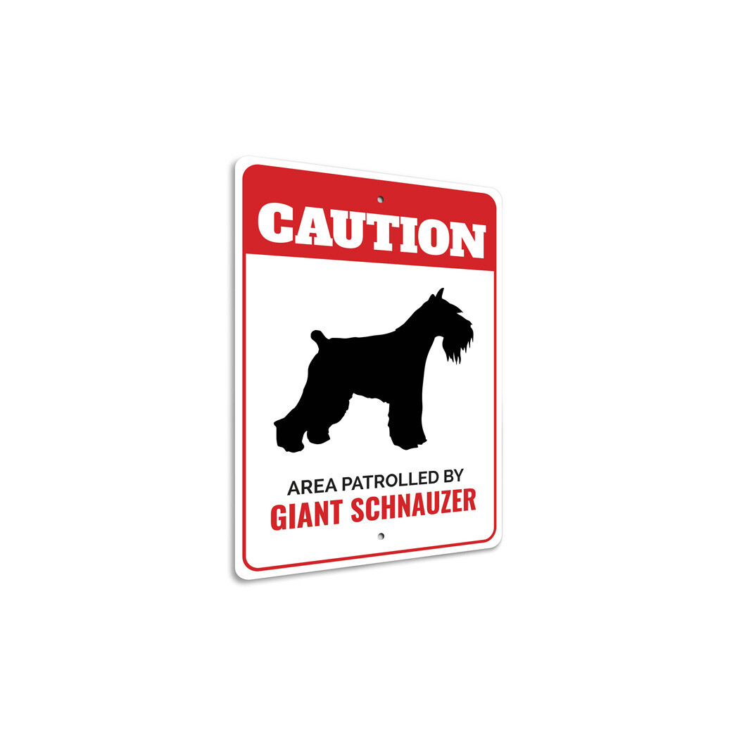 Patrolled By Giant Schnauzer Caution Metal Sign Dog Kennel Pet Breed Canine K9