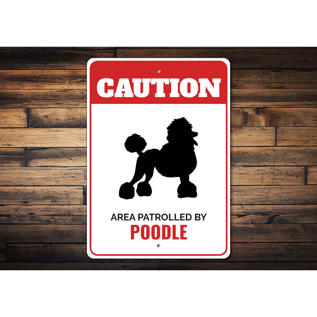 как выглядит Patrolled By Poodle Caution Metal Sign Dog Pet Animal Lover Canine K9 Plaque фото